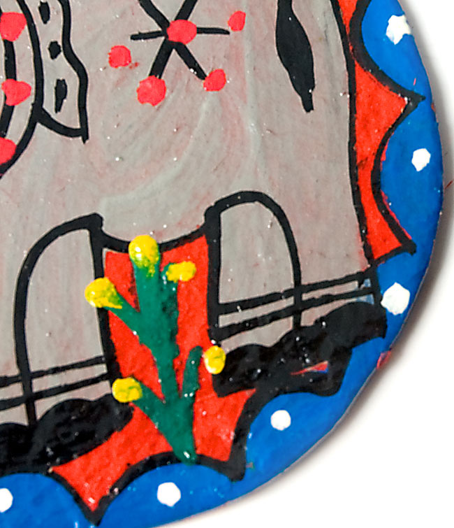 素材は紙を固めた物で、しっかりと塗装がされており、とても軽くて丈夫です。紙の持つ素朴な素材感と、手塗りの温もりが合わさって、手工芸ならではの味わいを存分に堪能できます。