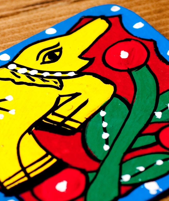 〔四角形〕 ミティラー画のコースター - 象さんと木の実の同一カテゴリ商品