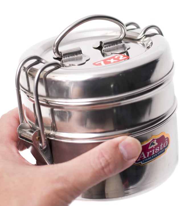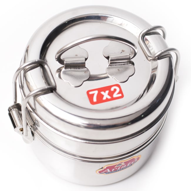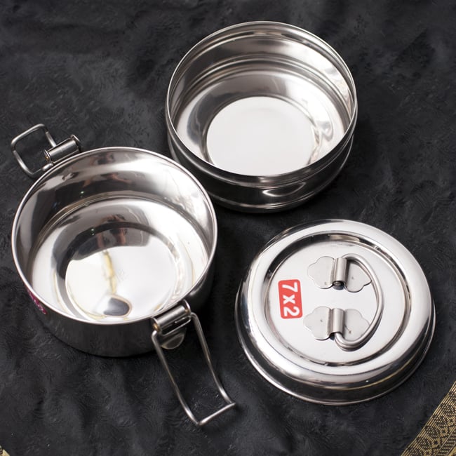 【送料無料・4個セット】2段インド弁当箱 【直径:約11.5cm 高さ:約9.5cm】 - 7x2 通販店