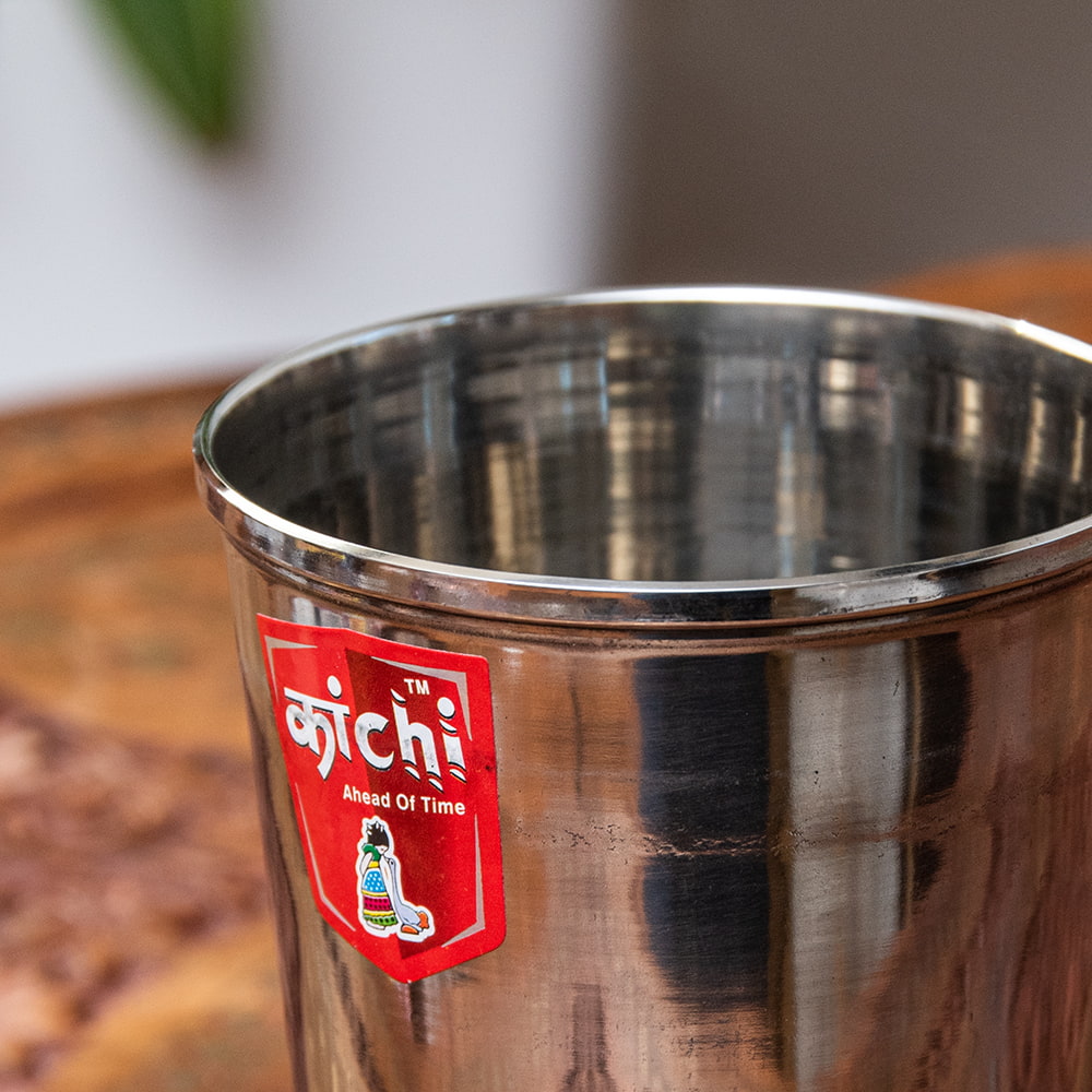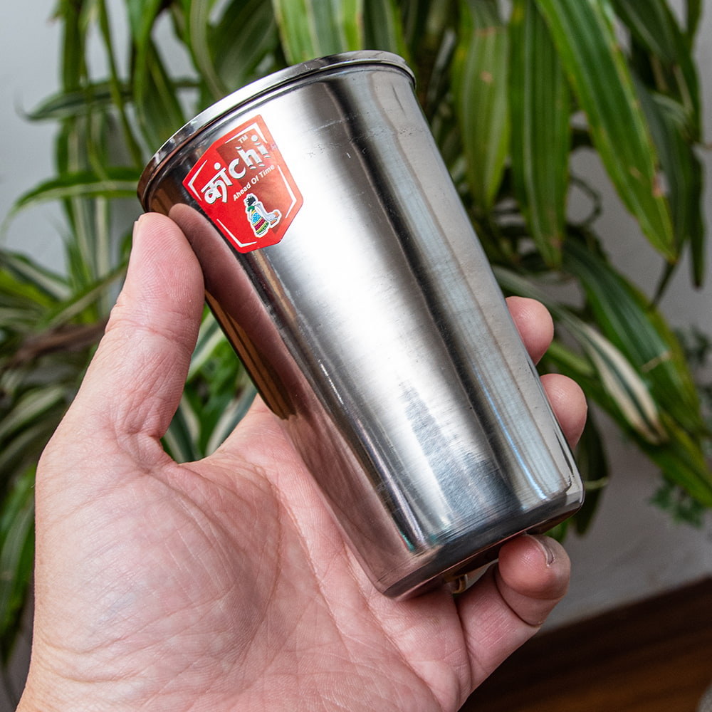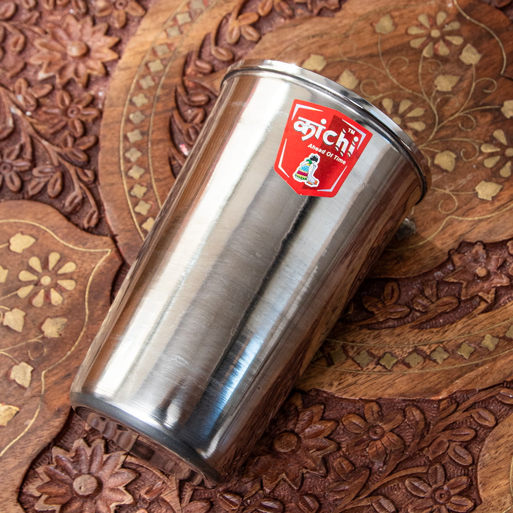 ステンレスで出来たコーヒー・チャイカップです。小ぶりなコップですが、インドで使われているチャイカップとしては大き目の部類に当たります。シンプルな一品ですが、これでミルクティーを飲めば、すっかりチャイ気分。長く使っていただける一品です。