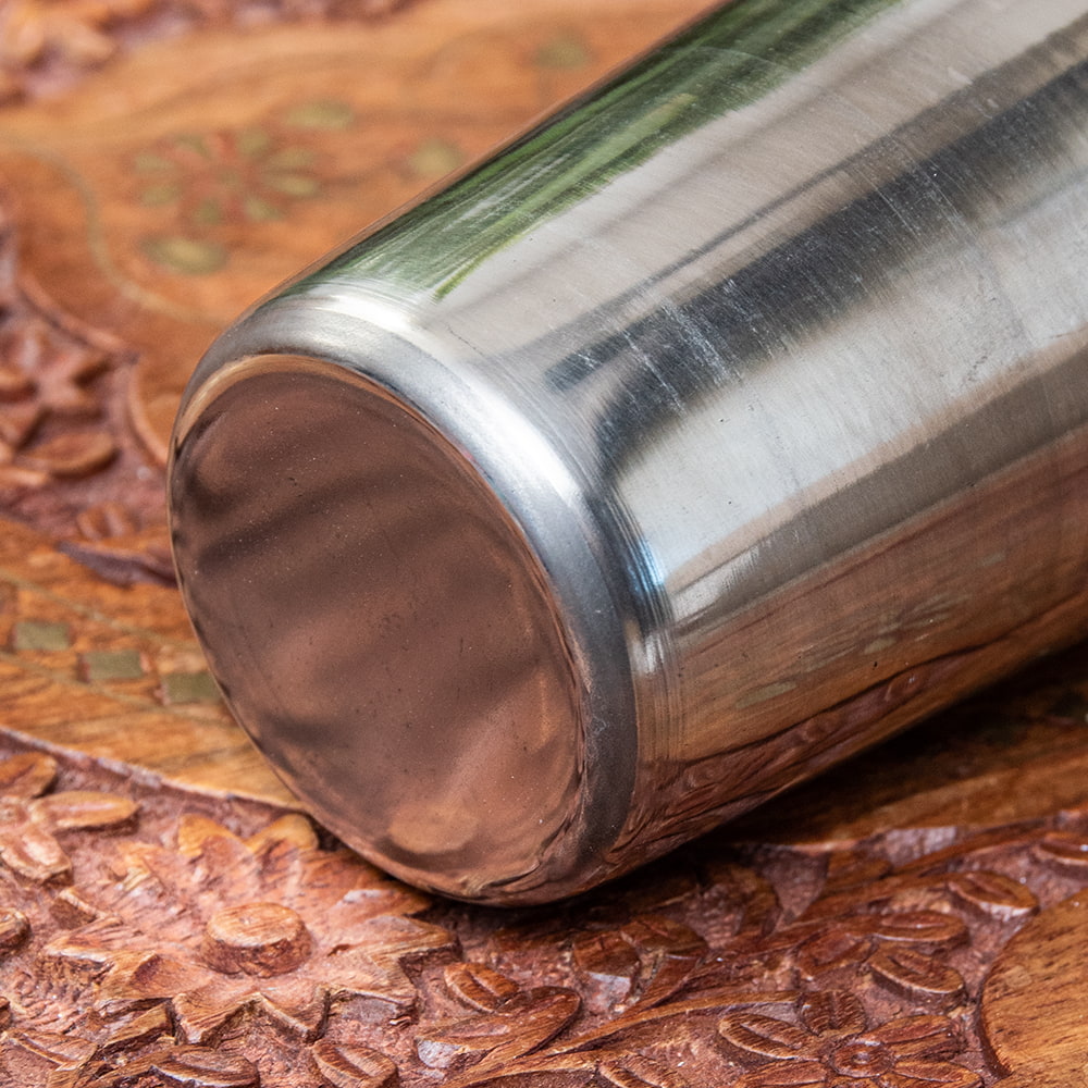 暑いインドではどうしても不潔になりがちです。そこでインド人が好んで使っているのが傷がつきづらく、傷の所にバイキンが入らないステンレス製。さらに、周りの風景を写しだしてくれるので、場所によってさまざまな表情を見せてくれます。