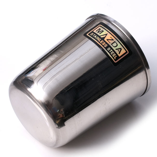 ステンレスで出来たコーヒー・チャイカップです。小ぶりなコップですが、インドで使われているチャイカップとしては大き目の部類に当たります。カップの底に金属球が入っており、振ると鈴のような澄んだ音が鳴ります。氷が入っていなくても氷が入っている様な気分になれる、遊び心あふれた一品です。楽しいティータイムをより楽しくしてくれること間違いなし!