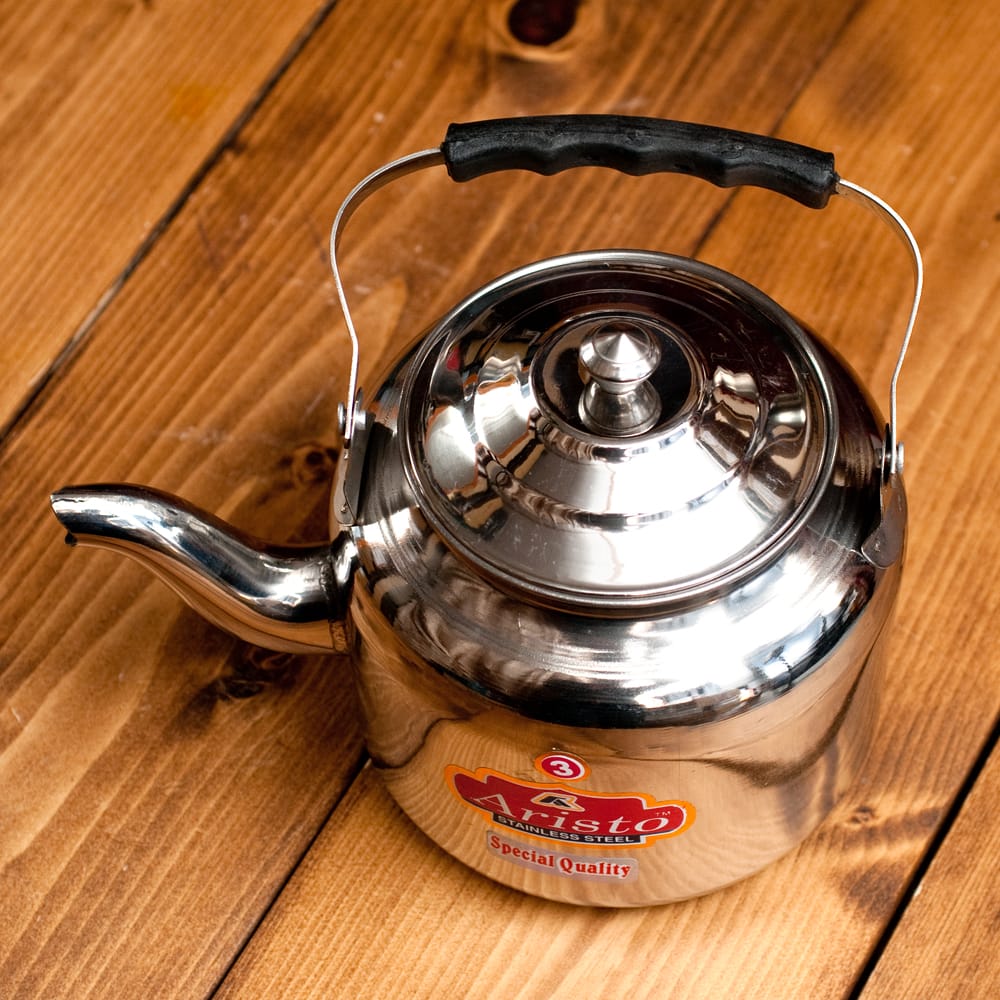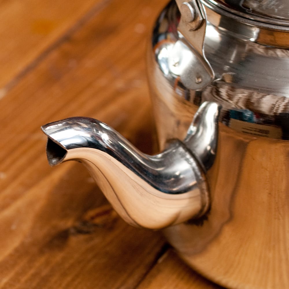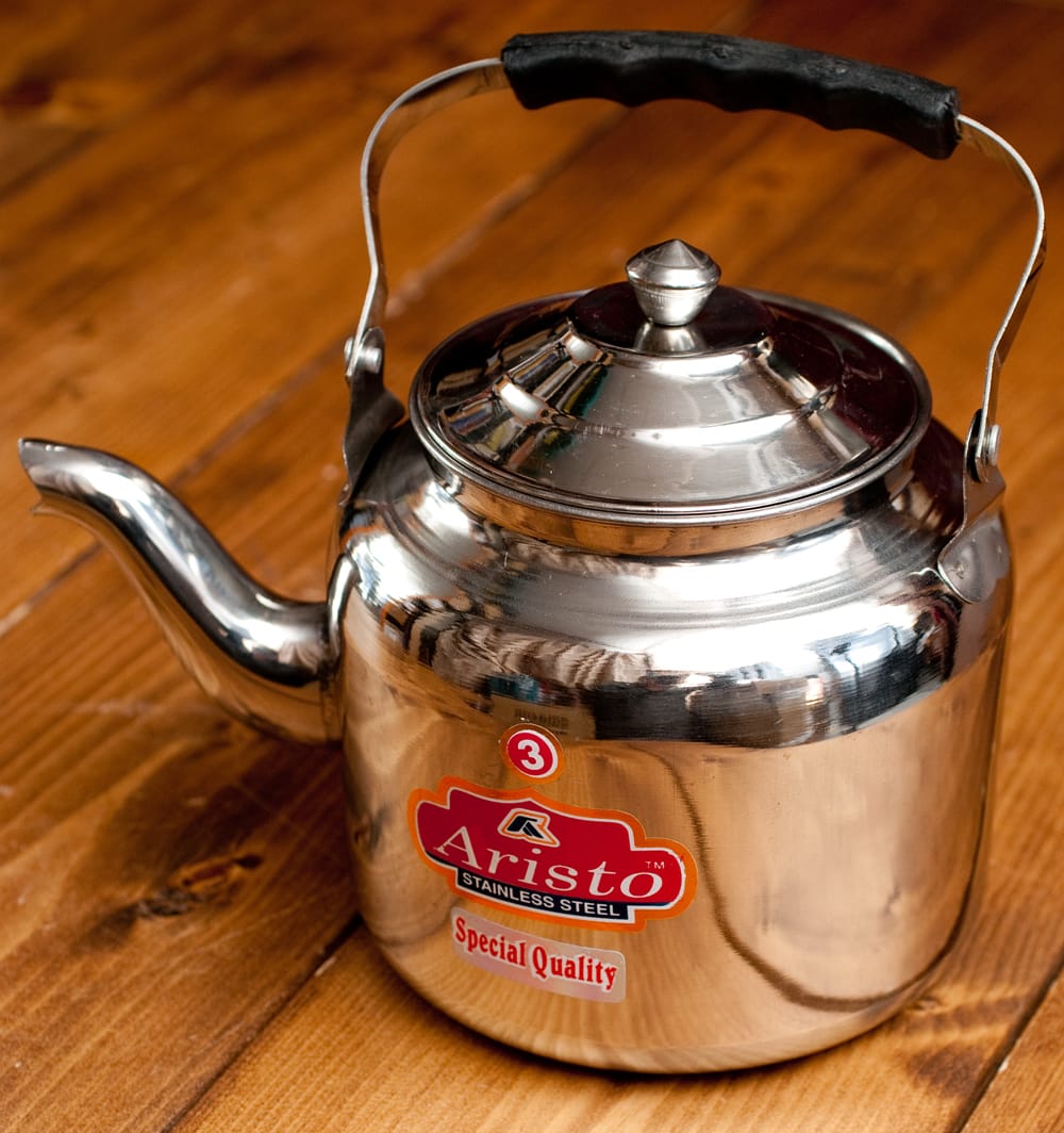 路上のチャイ屋さんがチャイを入れる時に使っているやかんを入荷しました。インド現地そのままのクオリティよりも数段良質な、つややかなステンレスを用いた美しいやかんです。なめらかで丸っこい形状に無骨さが加わって、これぞまさにインド!といったアイテムです。蓋の取っ手もとてもキュートです。サイズは少し小さめで、少人数分のチャイのお湯を沸かす時などにぴったりではないでしょうか。