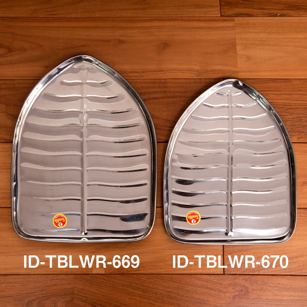 ![【送料無料・3個セット】インドのステンレス製 バナナリーフプレート[約30.3cm] 2 - バナナリーフの形をした、ステンレス製の珍しい食器です。南インド料理はもちろん、さまざまな料理へオススメです!](https://www.tirakita.com/Zakka/Photos/set_ag_id_tblwr_670_2b.jpg)