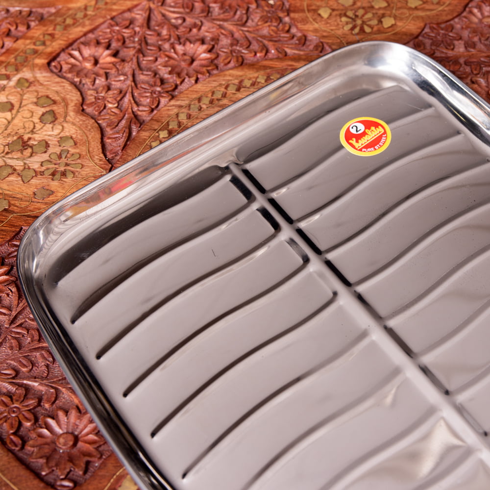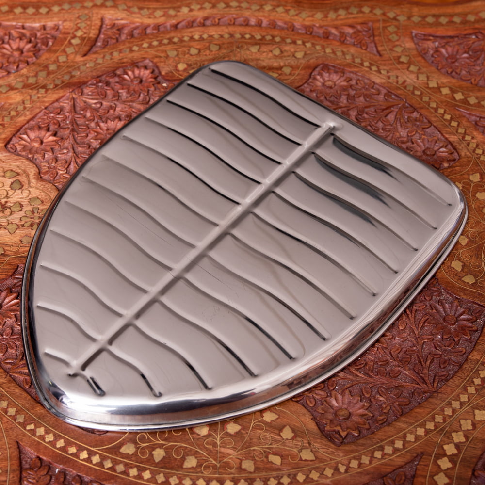 こちらの食器は、そんなバナナの葉っぱをモチーフにしたステンレス食器です。南インドで用いられているバナナの葉と、北インドで一般的に使われているステンレス食器。それぞれの魅力を融合したような製品です。本物のバナナの葉はなかなか手に入りませんが、こちらの食器なら南インド料理を出すときも雰囲気を損なわず、お手軽に料理を盛り付けることができます。