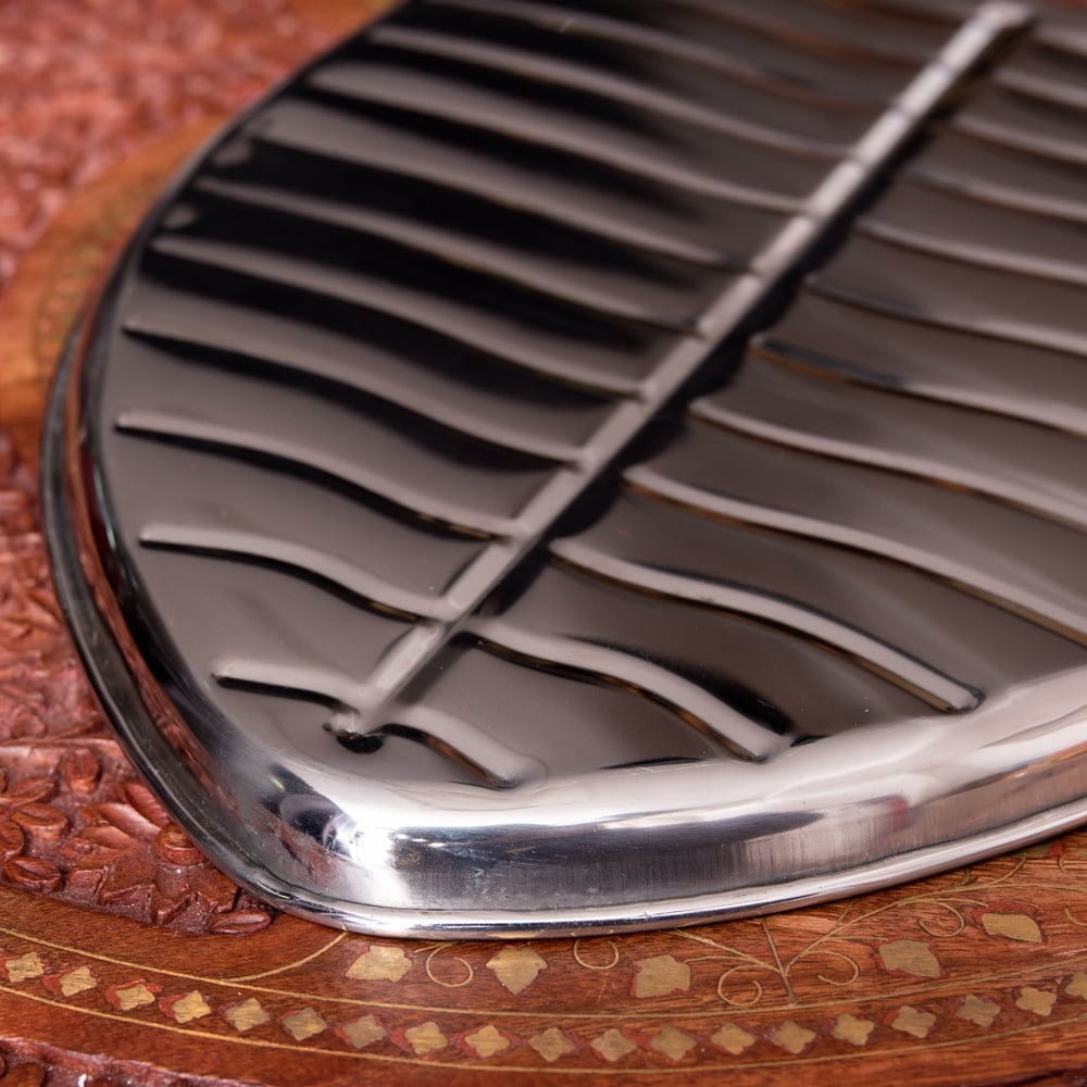 バナナリーフの形をした、ステンレス製の珍しい食器です。南インド料理はもちろん、さまざまな料理へオススメです!