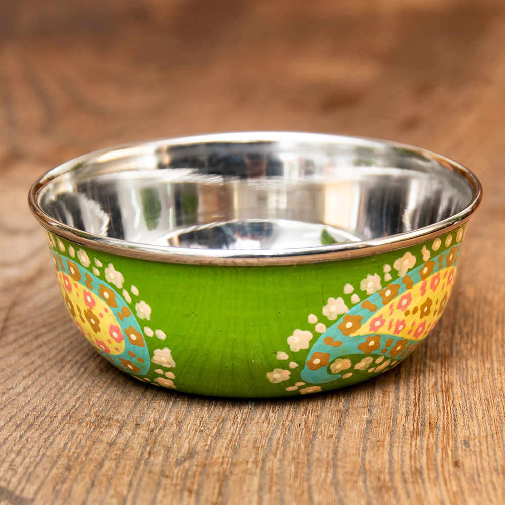 ピクルスやソース、デザートなどを入れておくのにぴったりなインドの小皿。その他、薬味や調味料を入れておくのにも便利です。使いやすいサイズ感で、色鮮やかなかわいいカシミールのペイントが、施されているのが特徴です。