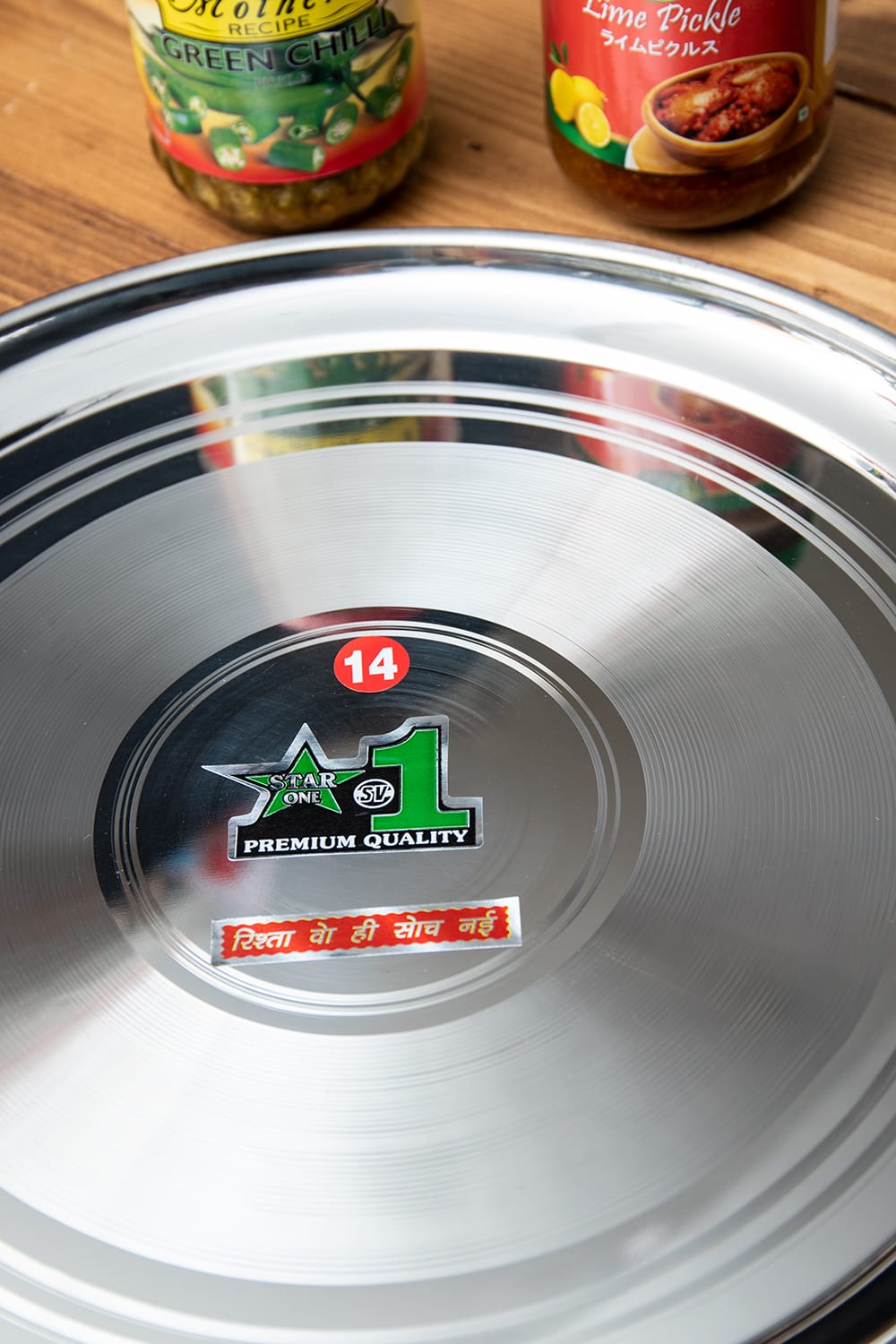 インドでカレーを食べるときに使うステンレス製の大皿。大皿の中にご飯を入れ、小皿の中に数種類のカレーを入れて使用します。うっすらと透かし模様がはいっていてデザイン性も優れた一枚です。陶器の器も魅力的ですが、やはりインド料理といえばステンレス食器!小皿をずらりと並べて色々なカレーを盛り付けるのが本格インド式です。■収納しやすい形です