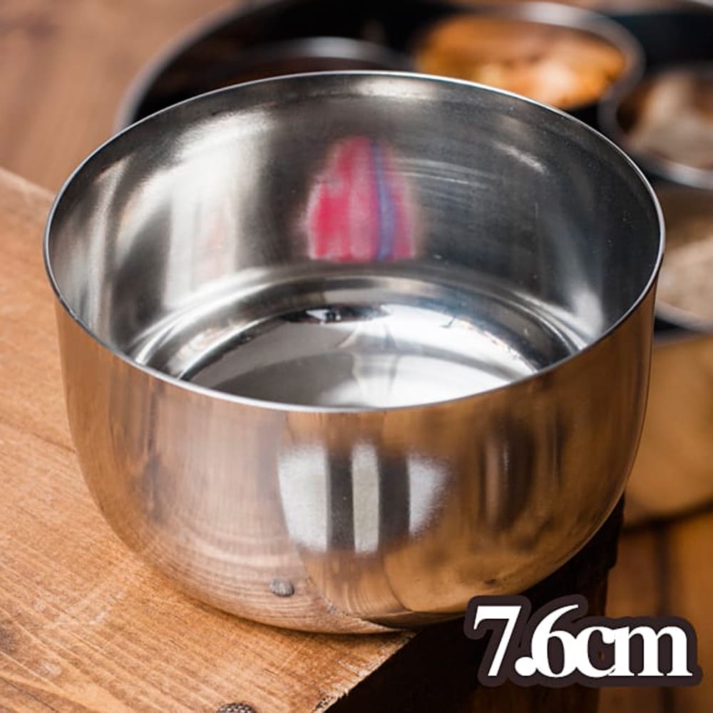インドでカレーを食べるときに使うステンレス製の大皿。大皿の中にご飯を入れ、小皿の中に数種類のカレーを入れて使用します。うっすらと透かし模様がはいっていてデザイン性も優れた一枚です。■収納しやすい形です