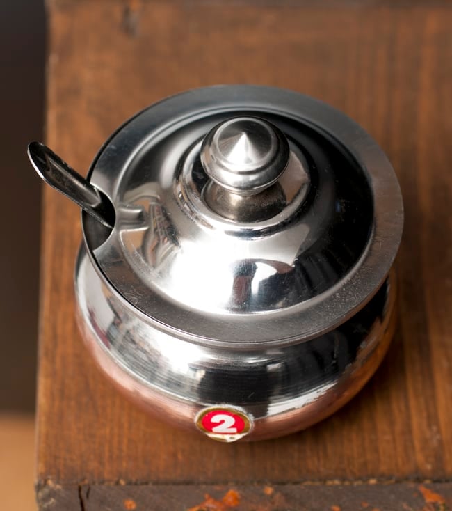 インドにおけるもっとも神聖なオイル、ギーをサーブするための小さなポットです。インドのご家庭や高級なレストランで食事をいただくと、このようなポットに温めたギーが供されます。これは大切なお客様へのおもてなし意味します。温めたギーをチャパティやご飯にかけると格段に風味があがり、大変嬉しいものです。■料理から儀式まで