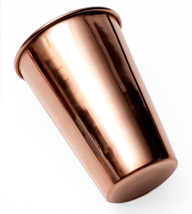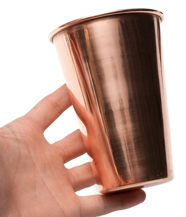 銅で出来ているコップです。インドで礼拝用や祭壇用として使用され、ガンガーの水を汲むときなどにも使用されています。銅はヒンドゥー教では聖なる金属として考えられ、コップやスプーン等色々と形を変え、寺院や祭壇などで使用されます。■聖なる金属の銅製です