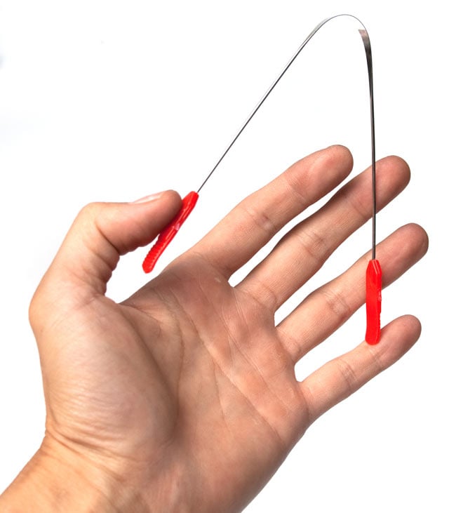 「アーユルヴェーダ」では舌の汚れ(舌苔)はよくないものと考えられ、除去するべきと考えられています。そこに登場するのがこの「タン・スクーレーパー」です。両端を持って歪曲させ、中心の曲がった部分を舌をこすります。舌を傷めないように、やさしく撫でる感じで、舌の表面全体を10回程度こすります。そうするとブラシなどで掃除するよりも安全に舌をキレイにすることが出来ます。