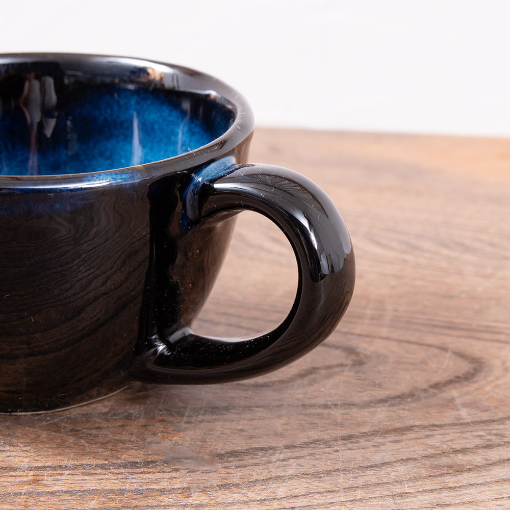 このスカイパープルは、手元に届いた時、オンラインで見た時よりだいぶ濃い色に見えたのですが、後日明るい日中見直すと、生地の内側から浮き立つように明るいブルーなのが見えて、奥行きのあるこの色がとても気に入りました。口当たりは厚めでぽってりしています。濃いめのチャイや、冬の温かい飲み物をゆっくり楽しむのに使用したいです。