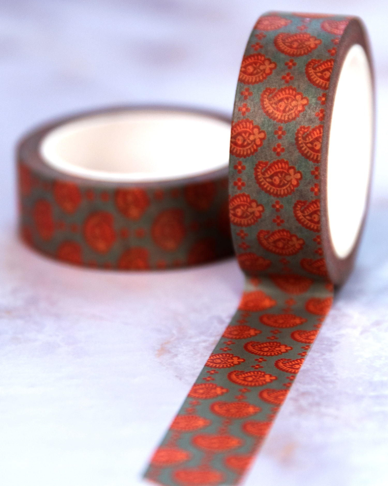 オレンジペイズリー-ティラキタオリジナル マスキングテープ 15mm x 10m