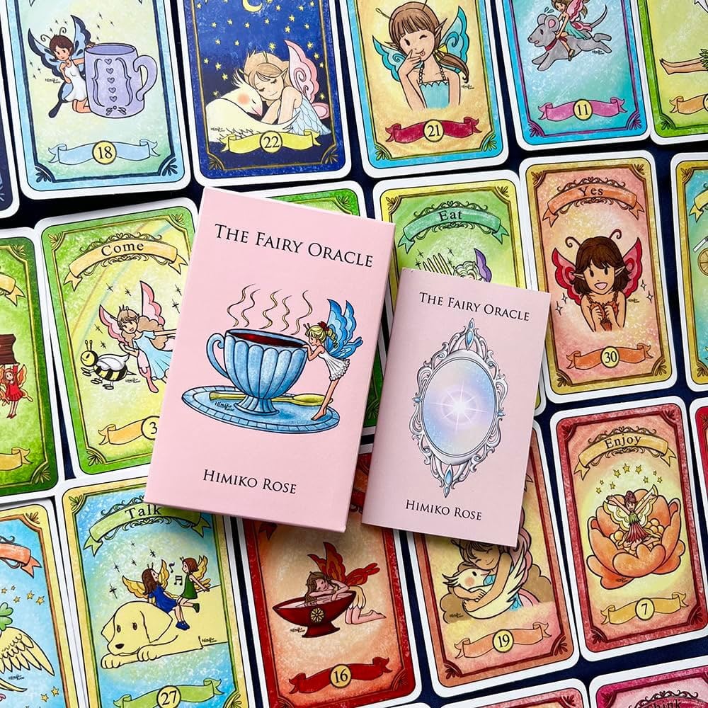 小さなフェアリー達が相談に乗ってくれる可愛らしいカードですひみこローズさんが作画と執筆をした33枚のオラクルカードと解説書のセット。