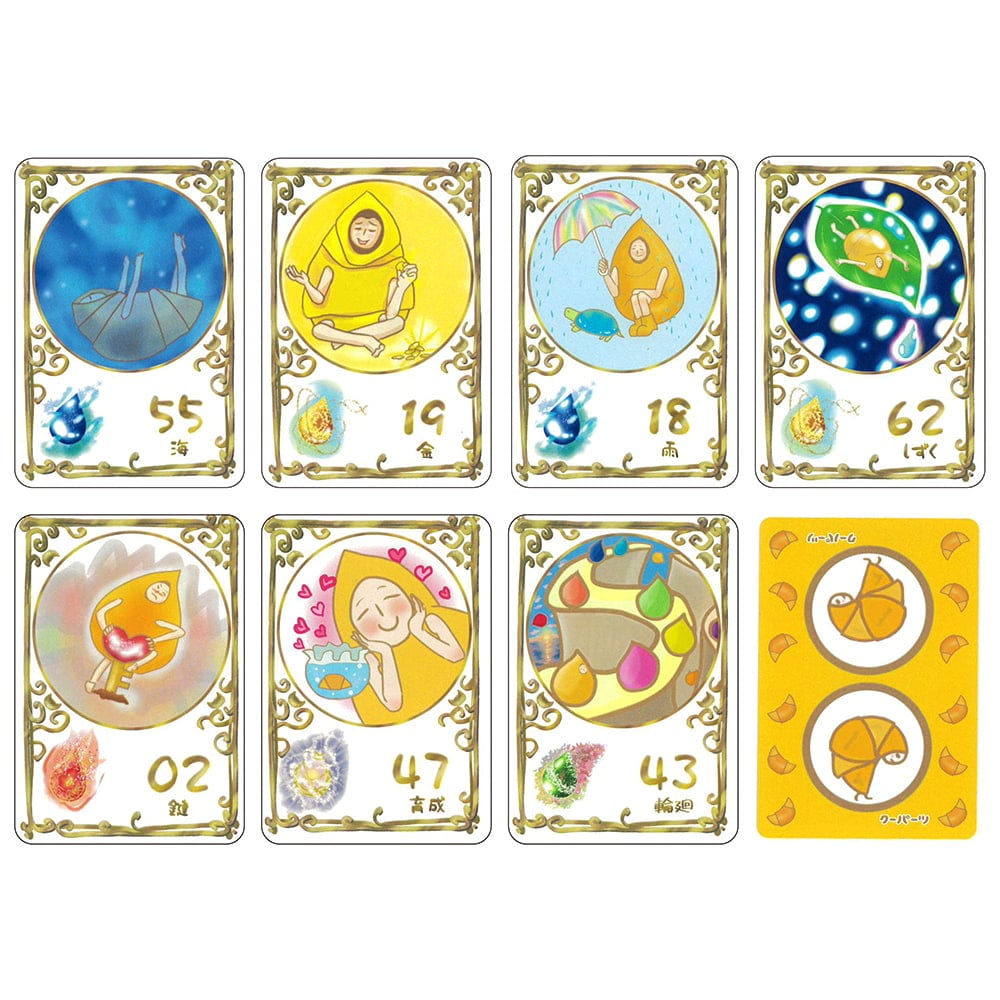 記載されているカード名はひとつの参考として、絵柄やカード番号の数字、色や雰囲気で感じたものから自由に発想を広げてください。固定された解釈がないからこそ、既存の占いの概念を超えた、自分なりの解釈を生み出す事ができるでしょう。
