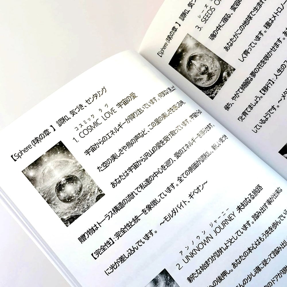 美しいオルゴナイトや宇宙を感じるイメージとともに、心を癒し、魂を導くメッセージを込めました。