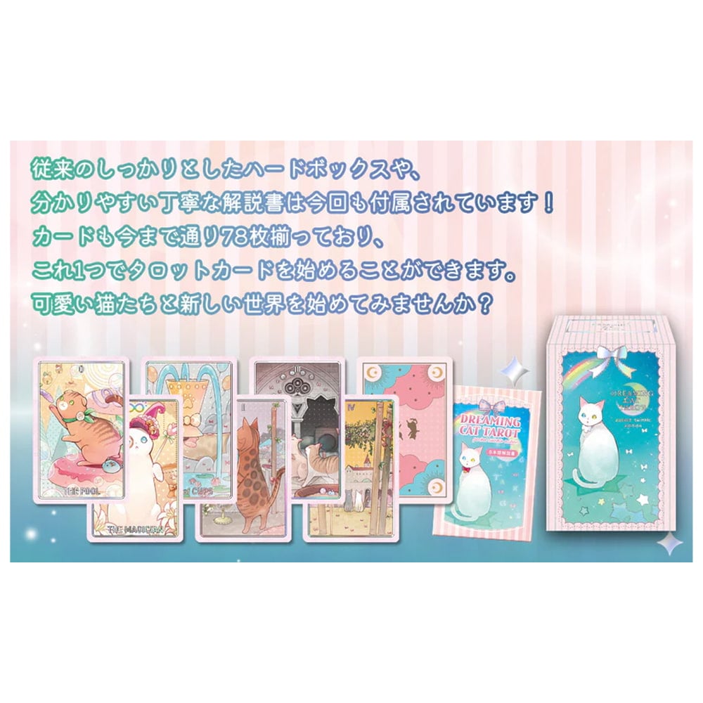 かわいいルナファクトリーのオリジナルタロットカードです。ドリーミング キャット タロット カードは、現代的で可愛いイラストによって、タロットカード特有の古臭さ、小難しさやとっつきにくさがありません。