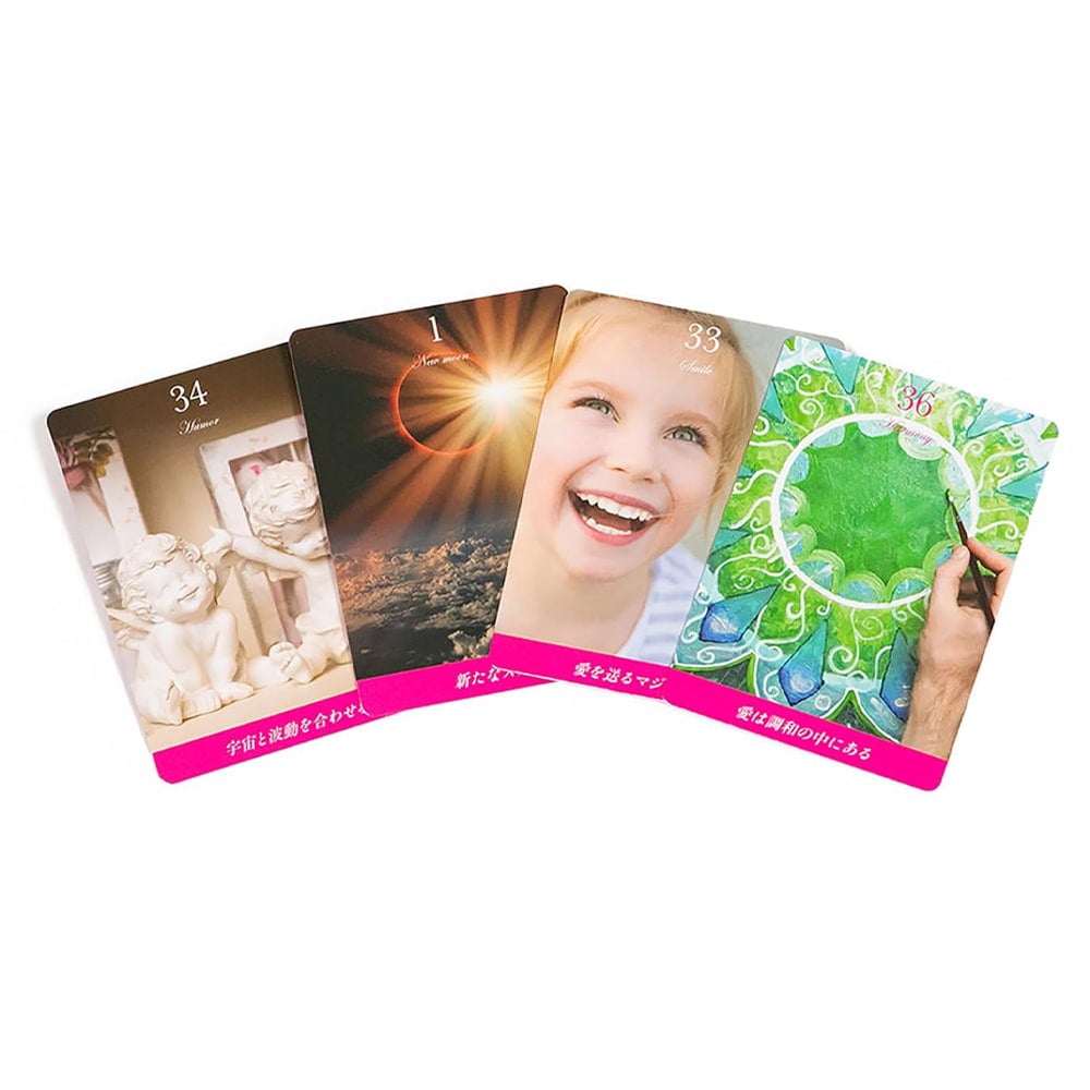 高い波動を放つ「マゼンタパワー」を象徴するかのようなパワフルな写真の数々が、カードを引く度に力強い愛のエネルギーを与えてくれるでしょう。