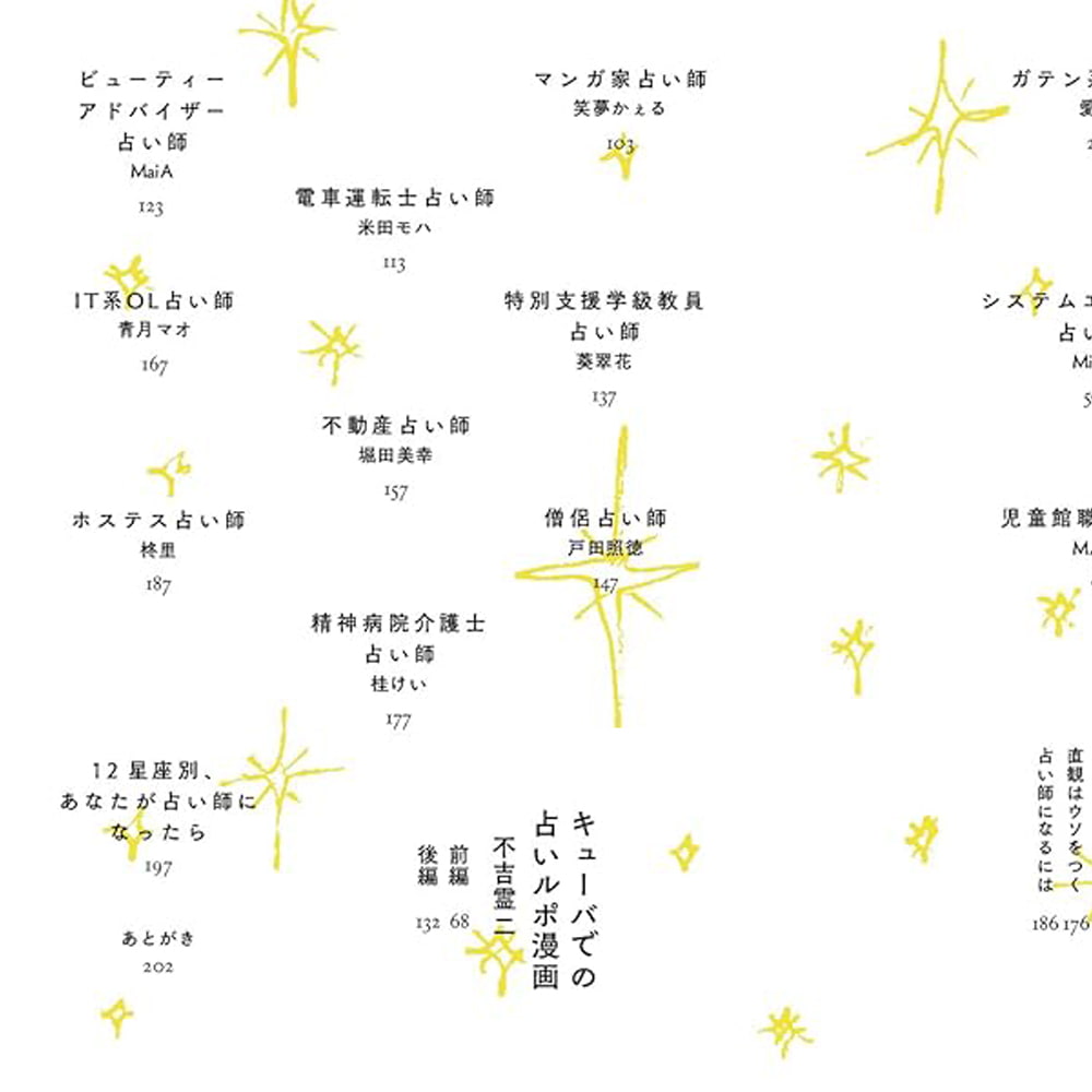 他にも占い師の高橋桐矢による占いコラムや、現役女子大生漫画家の不吉霊二による、キューバでの占いルポ漫画を収録。すべて描き下ろしの贅沢な扉絵にもご注目ください。文字だけでなく、絵でもお楽しみいただけます。