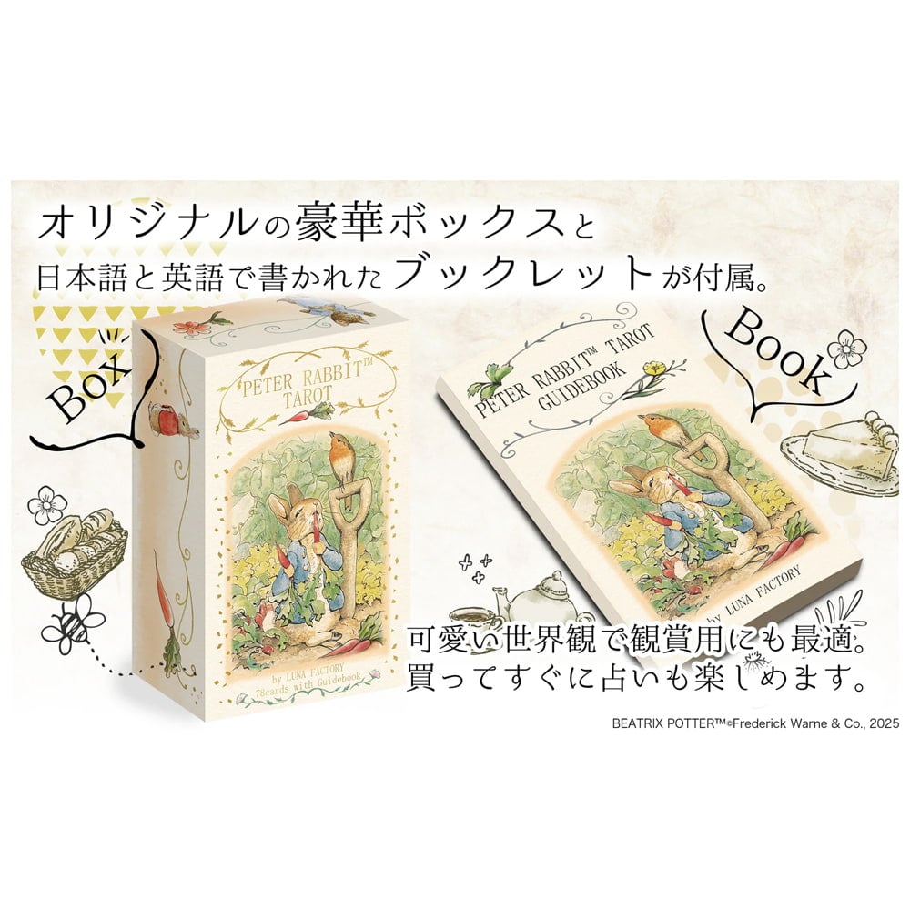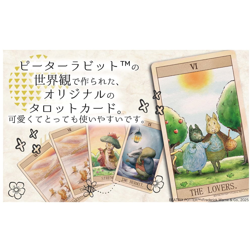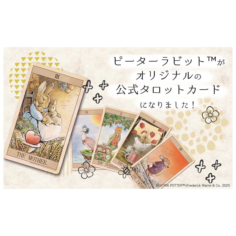 世代を超えて愛されるピーターラビットが、公式のタロットカードになりました。ようこそ、ピーターラビットと仲間たちが織りなす、優しく奥深い占いの世界へ。
