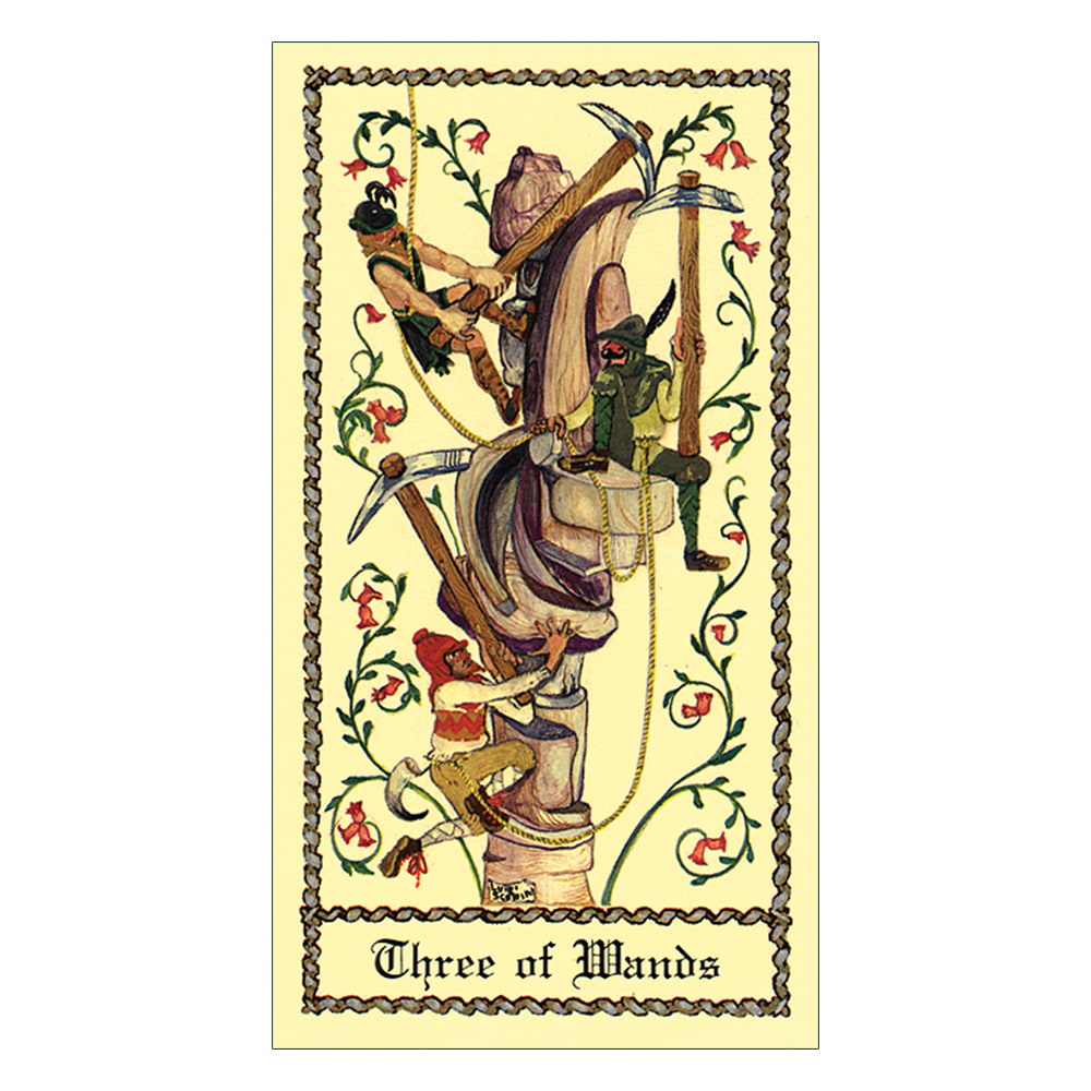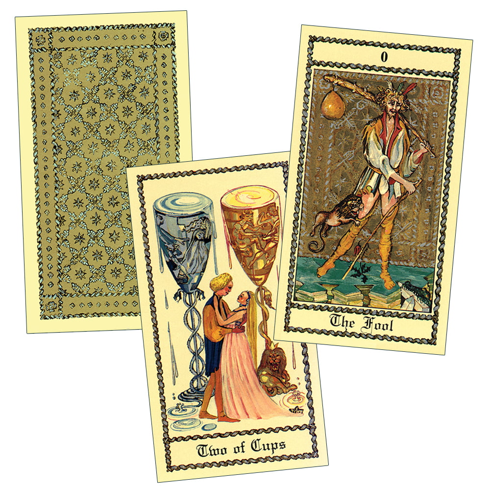 イタリアの芸術家ルイージスカピーニの精緻で優雅なデザインは、中世と ルネサンスの芸術的輝きを捉えています。中世 スカピーニ・タロットは、金のアクセントのタロットデッキで15世紀のイタリアを再現しました。大アルカナと小アルカナのコートカードは、15世紀のヨーロッパのデッキのように金色の背景で、大アルカナと小アルカナの両方にフルシーンが含まれています。小アルカナでは、スートのシンボルの対称的なシーンが配置された構成をそのまま使用しています。スカピーニの美術史の専門知識の深さは、彼の緑豊かな環境と時代衣装から明らかです。興味深い詳細、そして時にはユーモラスな参照がアートワークに巧みに埋め込まれており、カードの多くは歴史上の人物を描いています。たとえば、カップの騎士としてのラスプーチンなどです。読者はカードで明らかにされた普遍的な状況に楽しく深い洞察ができるのではないでしょうか?