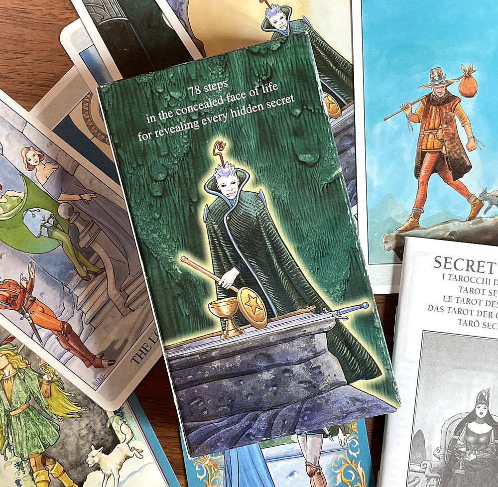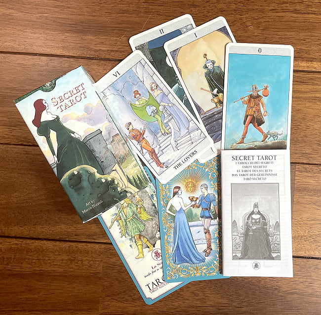 この「シークレットタロットカード」は、ひとつの物語で始まります。それは「秘密の国の物語」と題され、大アルカナの世界をひとつながりのものとして示してくれます。私たちはさながらルイス・キャロルの主人公アリスのように、「不思議の国」ならぬ「秘密の国」へと誘われます。