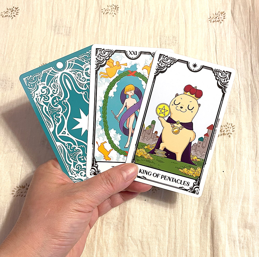 怖い絵柄が苦手な方や、タロットが初めてという方にも安心してお使いいただける明るいデッキに仕上がっています。
