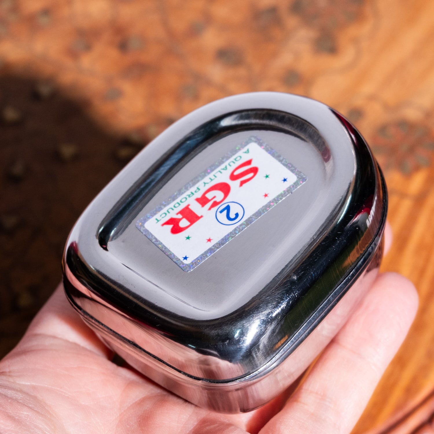 ステンレスのマサラケース・小物入れ-3号[約7.2cm×5.3cm 120ml]