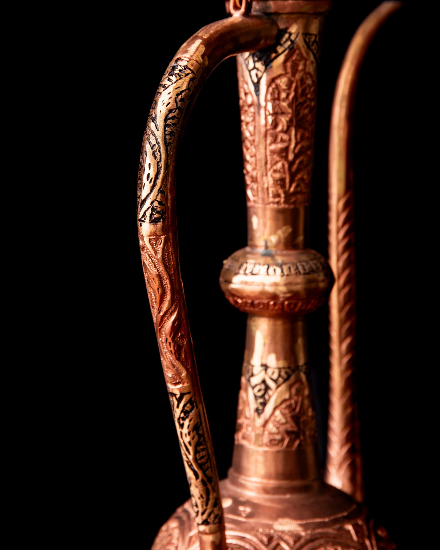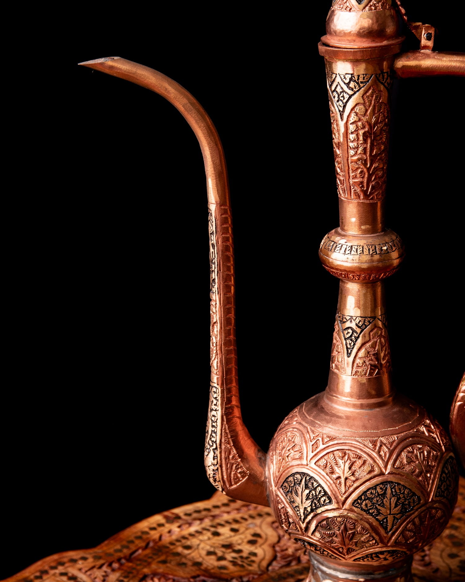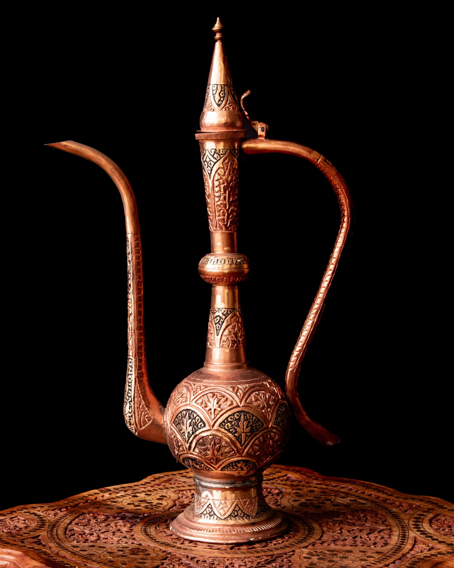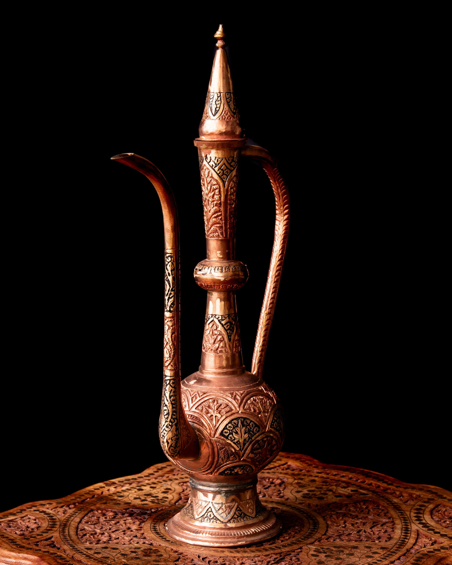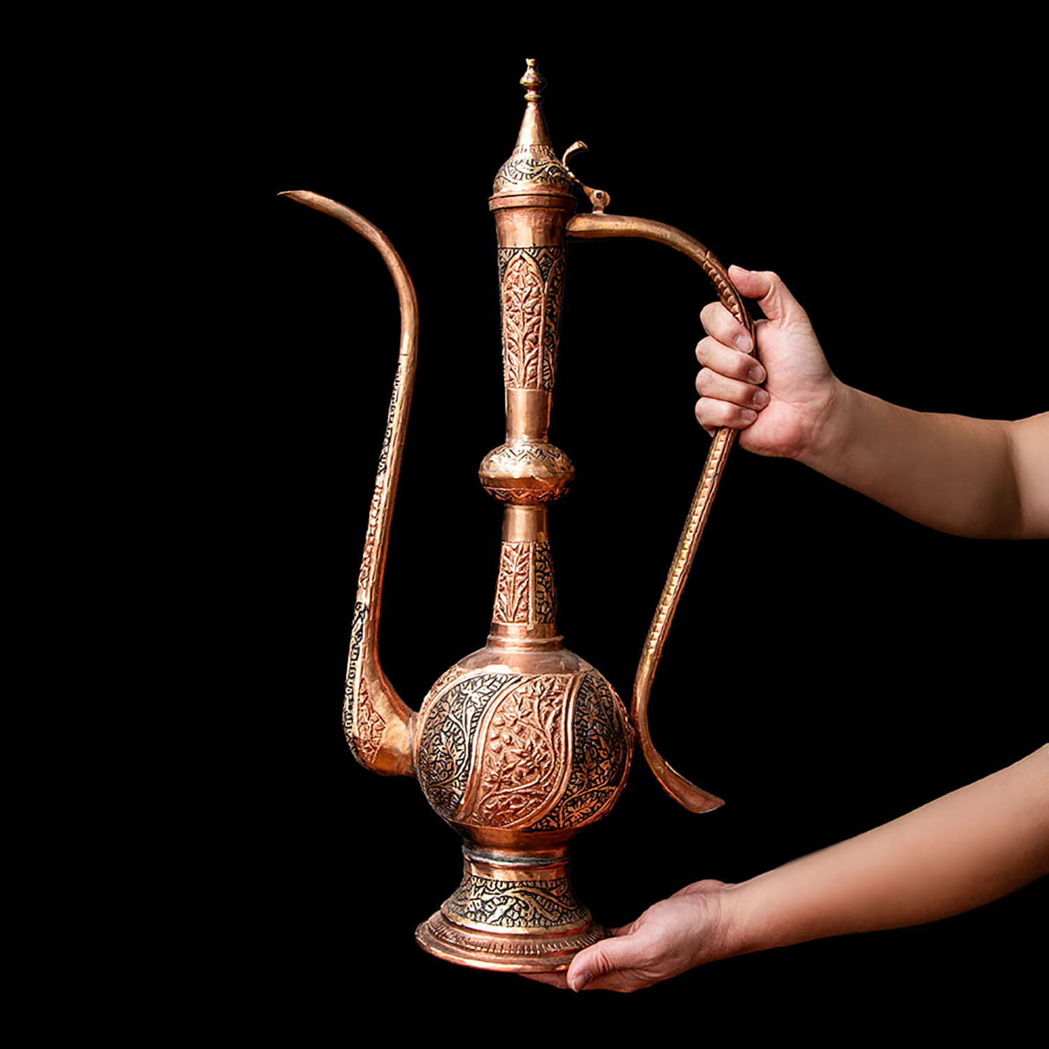 カシミールの重厚な精細彫金 エレガントな大型水差し 高さ:54cm程度