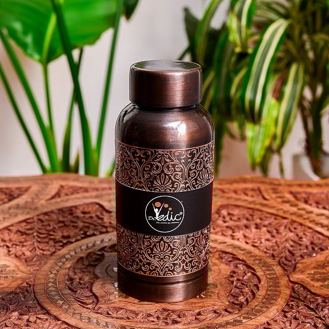 アーユルヴェーダ 高級銅製ウォーターボトル 水筒 ダマスク柄が美しい マグボトル 水差し〔約600ml〕