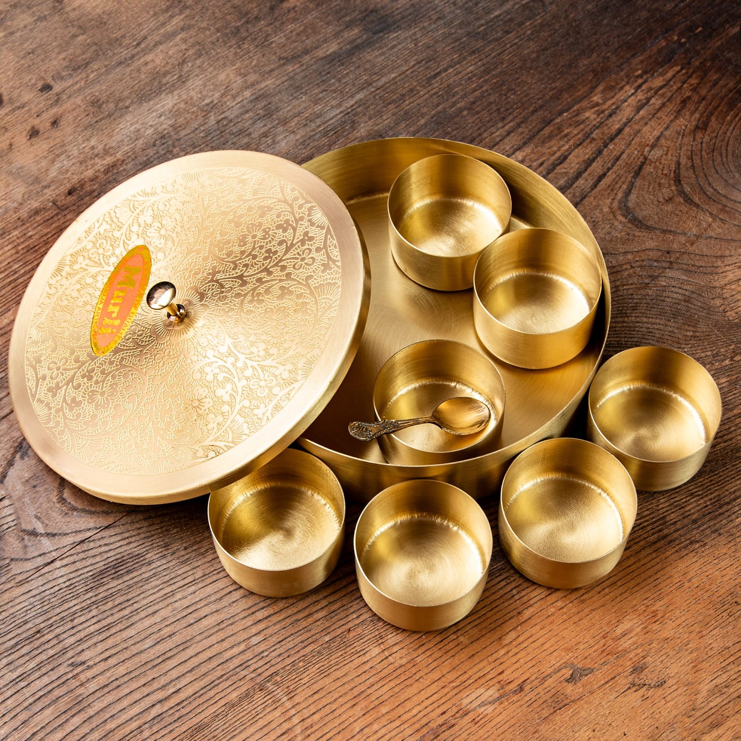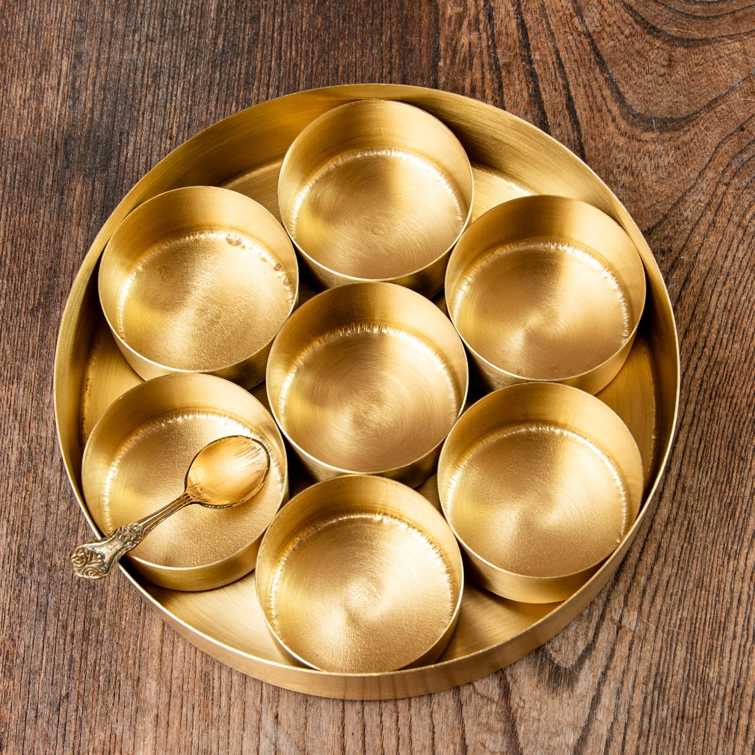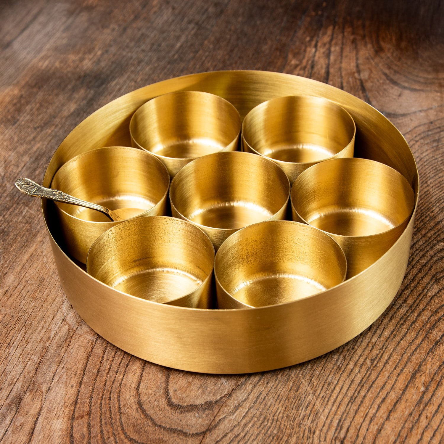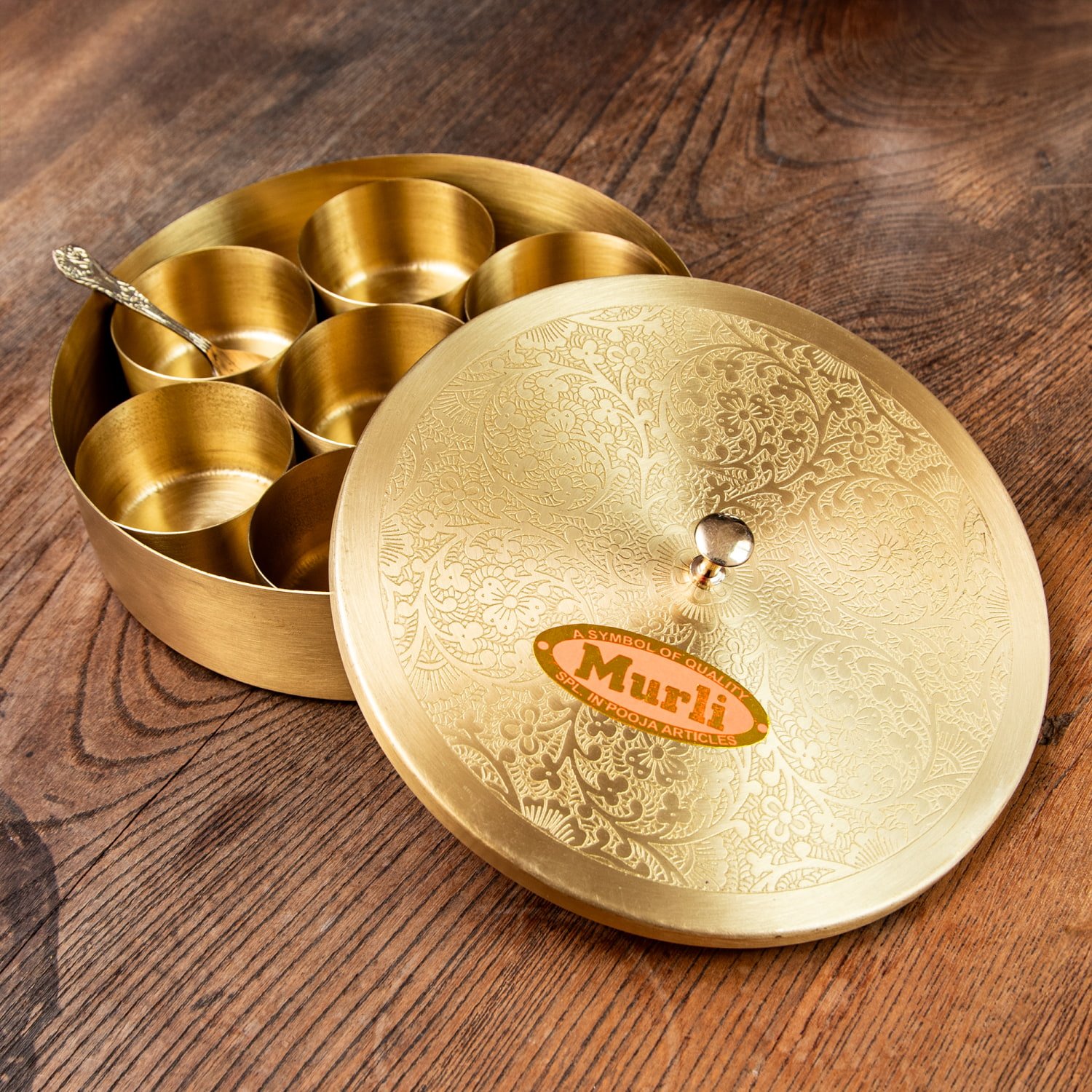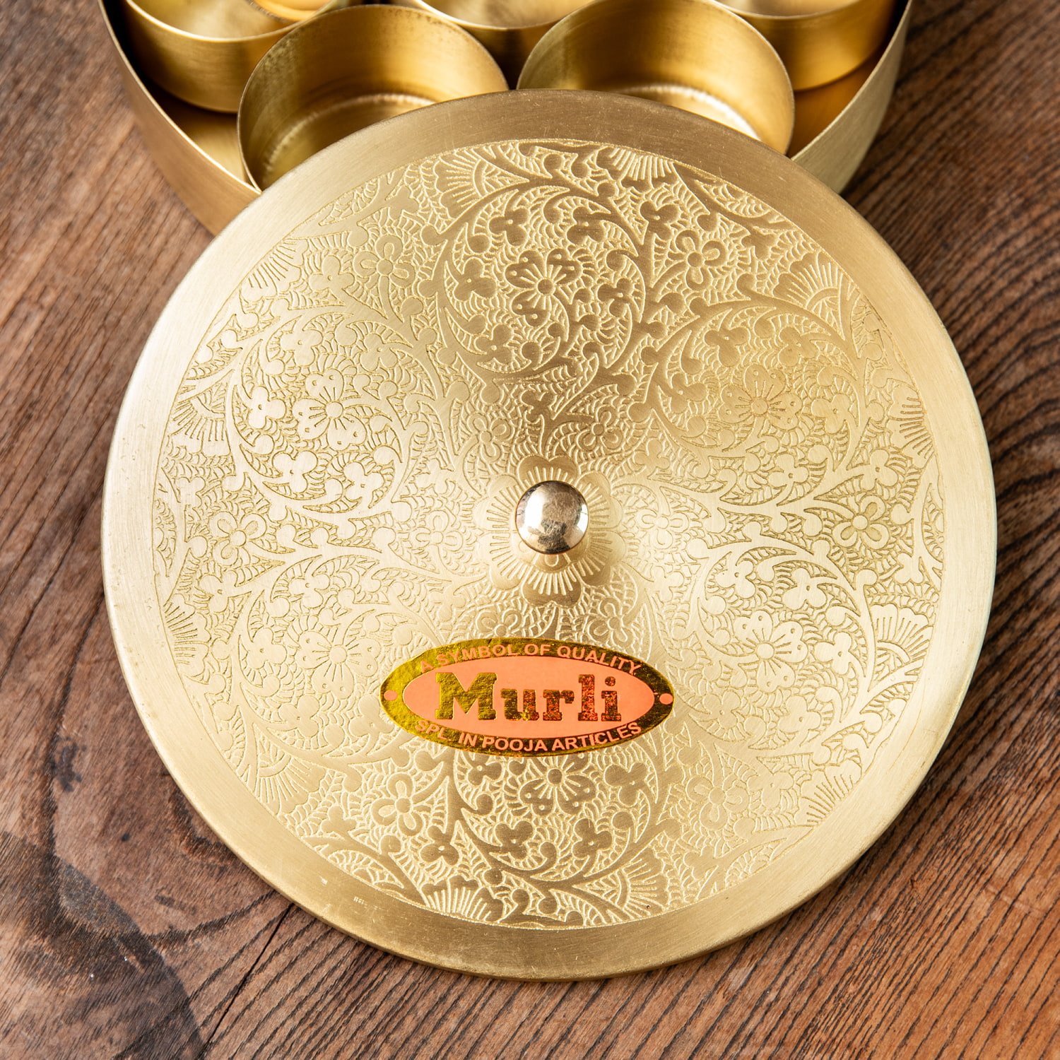 重厚な真鍮製 スパイスボックス マサラ ダバ 直径19cm
