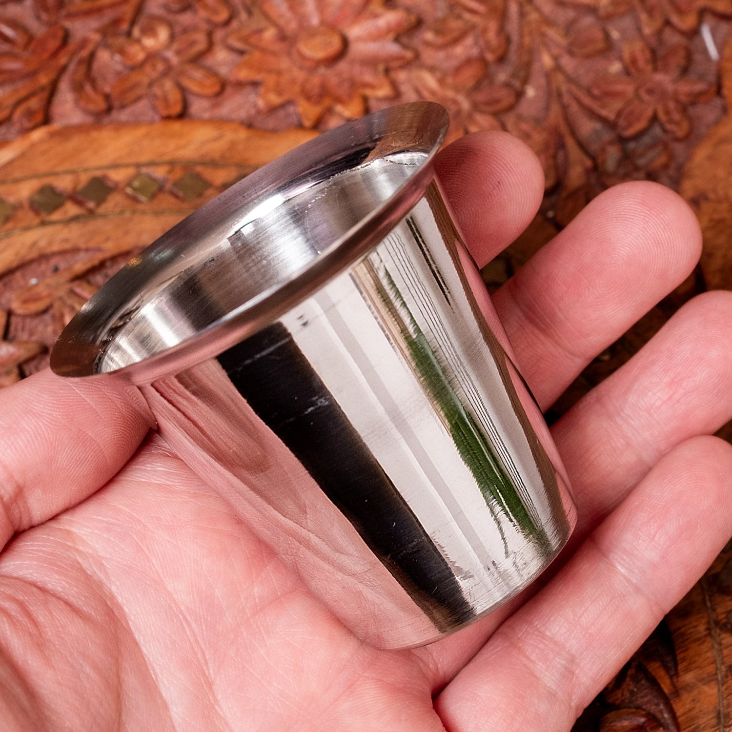 小さなステンレスの南インド式チャイカップ プージャグラス ショットグラスサイズ〔約5.9cm×約6.3cm 約90ml〕