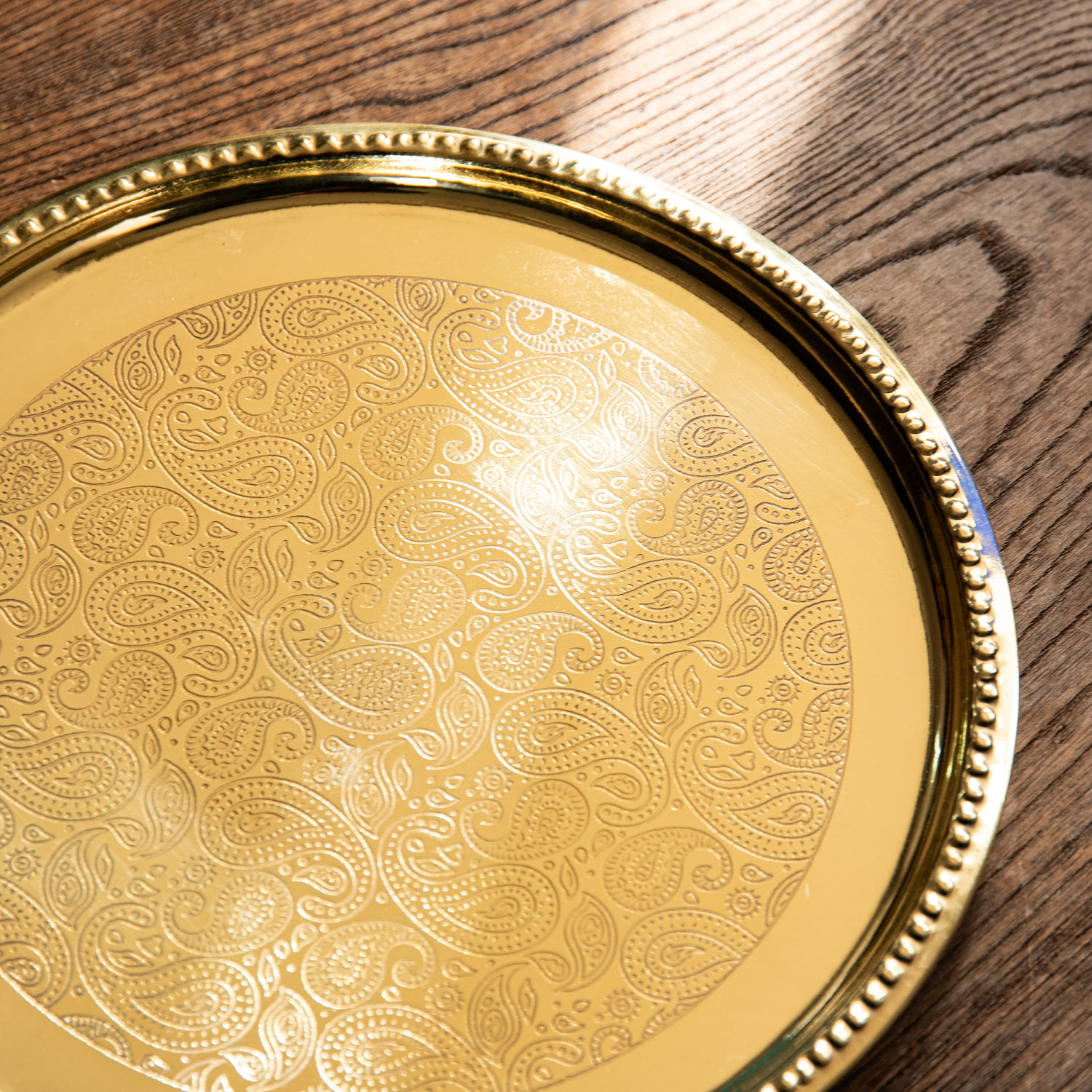 ペイズリー模様が美しい 金色のブラス製ラウンドトレイ 22.5cm 通販店