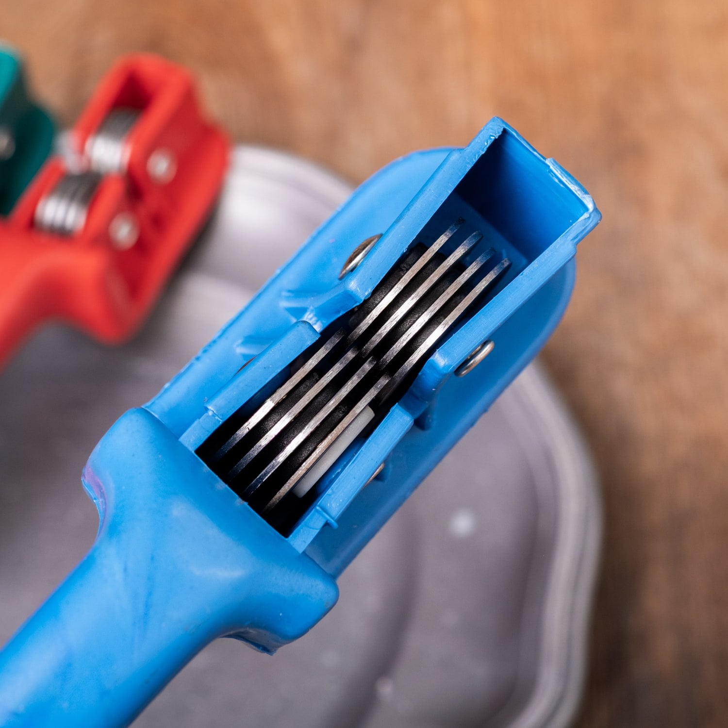 タイからやってきた、ポップで親しみやすい色合いが魅力の包丁&はさみ研ぎ器です。実用品でありながら、どこか明るく楽しい雰囲気があるのは、さすがタイのキッチン雑貨。グリーン、レッド、ブルーなど、タイらしいカラフルなカラーからお選びいただけます。キッチンに置いてあっても見た目がかわいいので、毎日の調理道具として気軽に使いやすいアイテムです。■刃に近づきすぎずに使える、安心感のある形