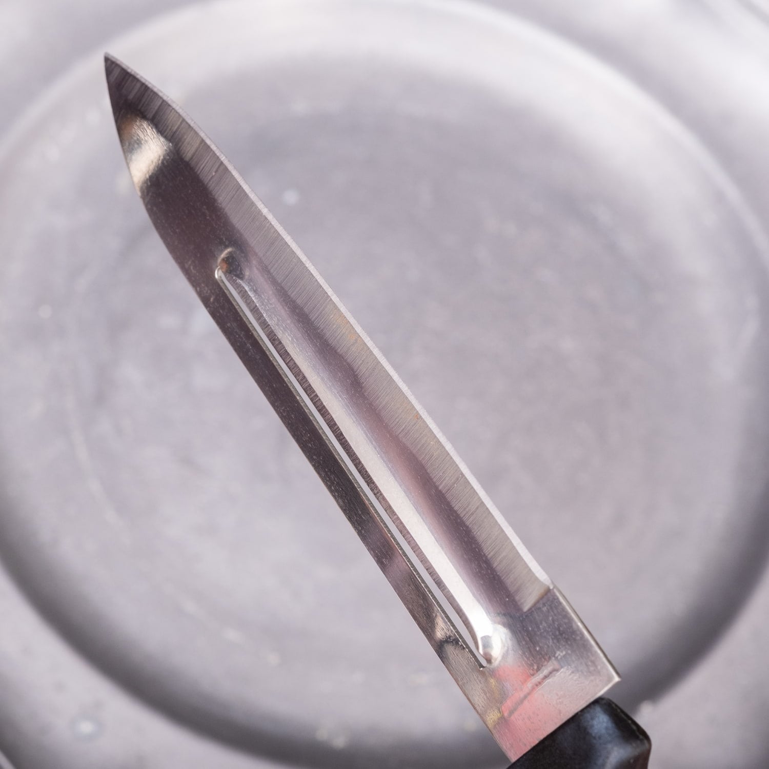刃先は細めで取り回しがしやすく、果物や野菜を切るのにちょうど良いサイズです。少量の食材をさっと切りたい時や、ちょっとした下ごしらえにも便利。小回りがきくので、普段使いのサブナイフとしても活躍します。■中央の穴がピーラーになっていて皮むきにも便利