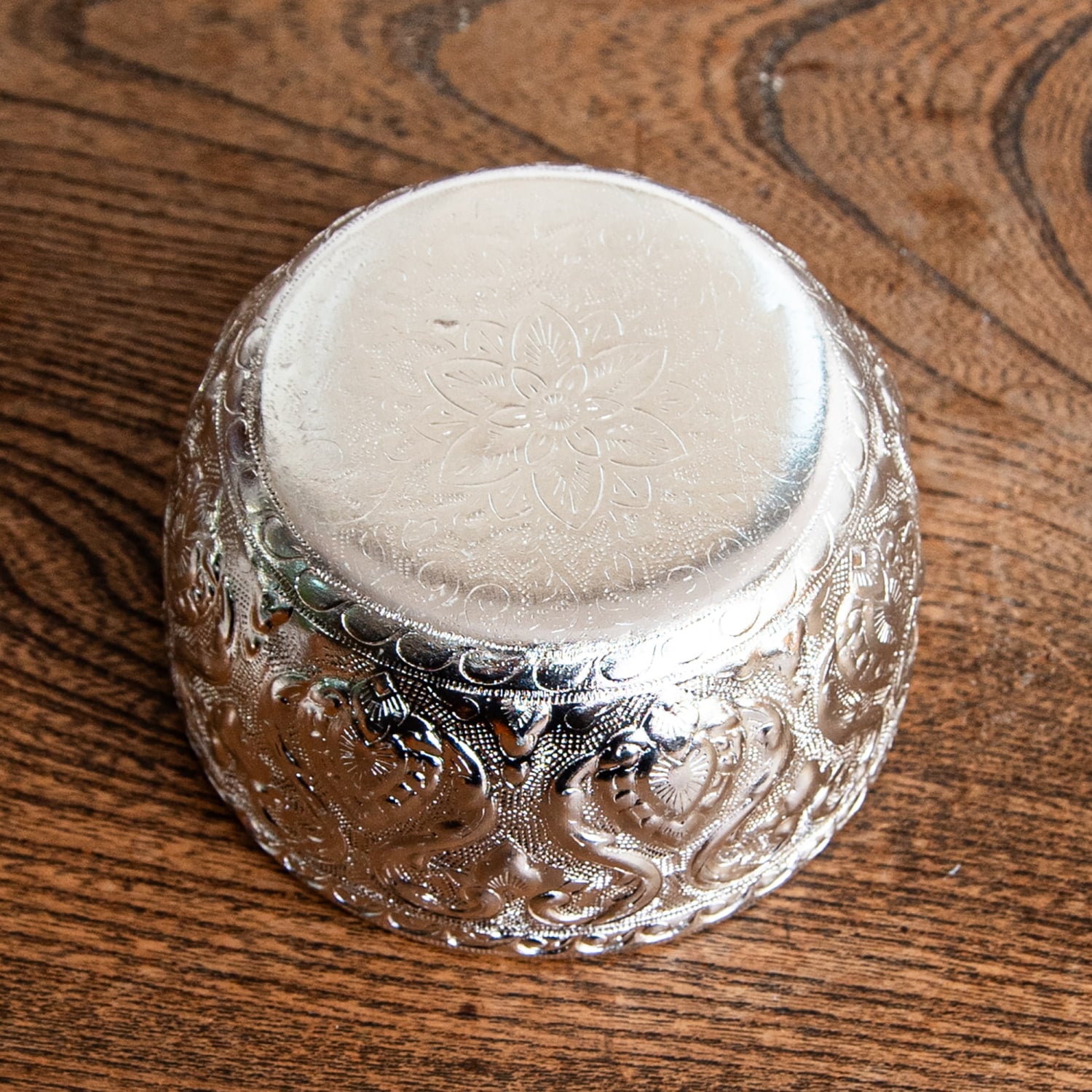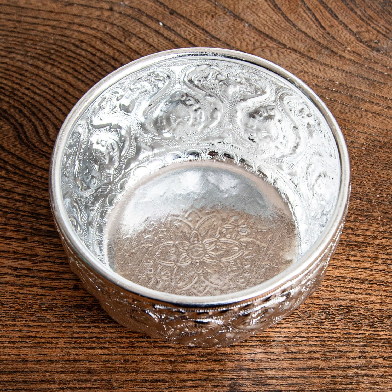 インド伝統唐草エンボスのアルミボウル【直径:約9.3cm】