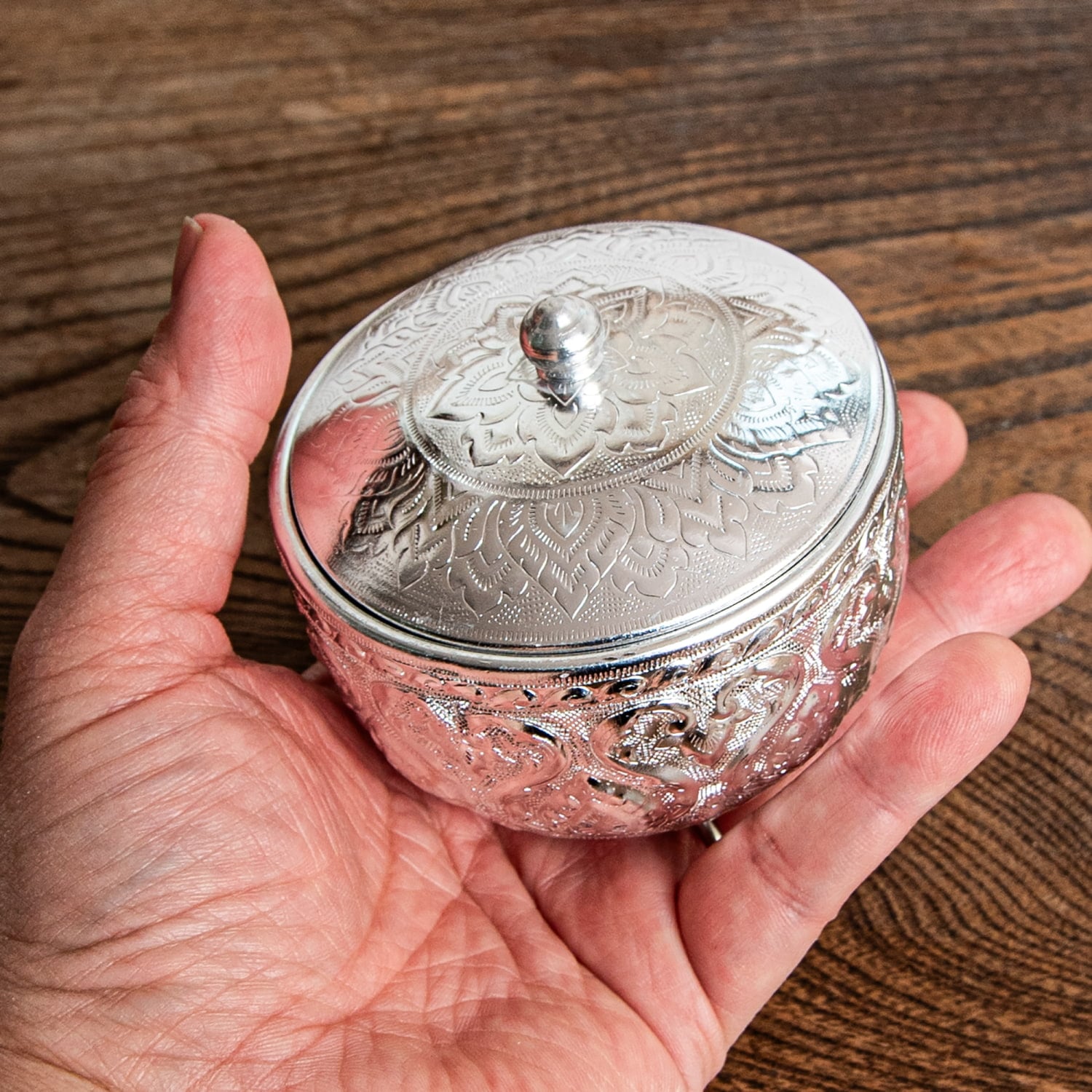 タイの伝統小鉢 小物入れ ハン・エンボスボウル 蓋付き 直径8.3cm 通販店
