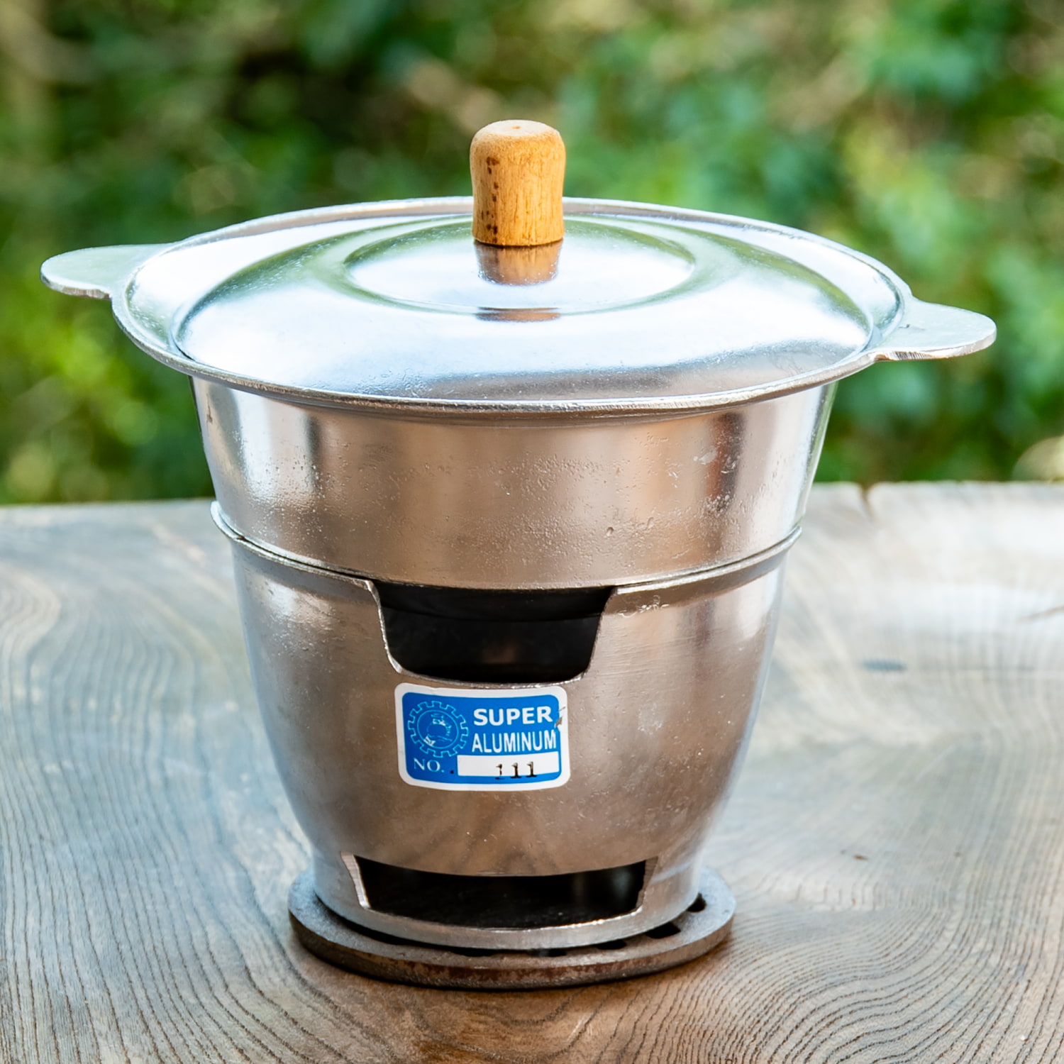 この鍋の魅力は、なんといってもその無骨で素朴な佇まい。軽やかなアルミの質感と、飾り気のないフォルムがいかにも現地の屋台や食堂の道具らしく、見ているだけでも楽しくなります。きれいに整いすぎていない実用品ならではの味わいがあって、キッチンに置いてあるだけでもぐっと雰囲気が出ますね。■専用の卓上コンロとぴったりのサイズです