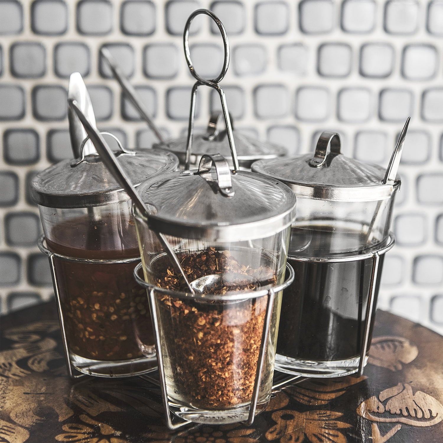タイではこういった調味料入れの中で、よく使われています