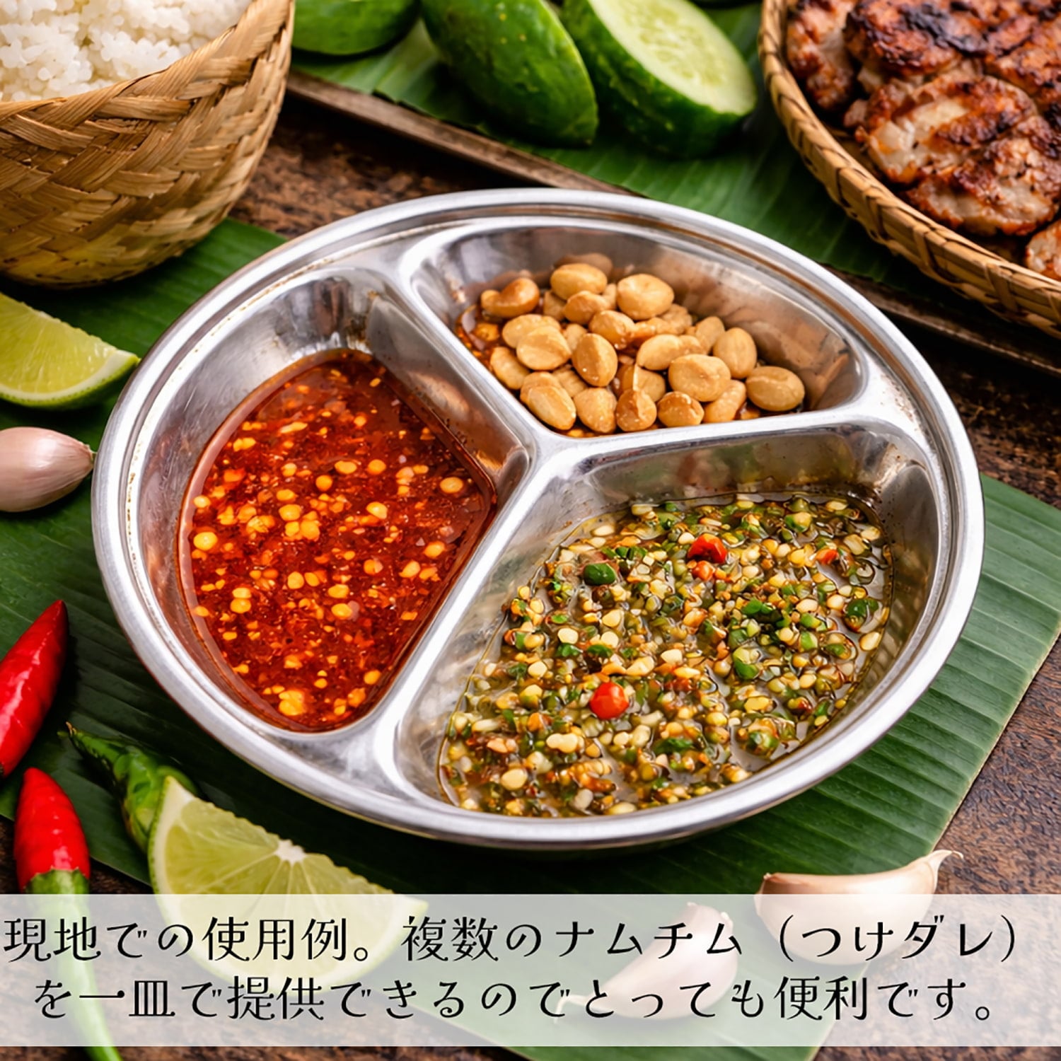 タイの屋台などで使われている小さなサイズのステンレス小皿です。ナンプラーやライムジュース、辛味ダレなどを入れるのに使われるとっても小さいプレート。このサイズは日本ではなかなか見かけないですね。食器としてはもちろんのこと、小物入れなどいろいろな用途にご利用いただけます。積み重ねができて場所を取らないのも嬉しいポイント。ついついたくさん集めたくなっちゃいますね。ティラキタ買付け班も、タイで見つけてあまりの可愛さにたくさん仕入れちゃいました!