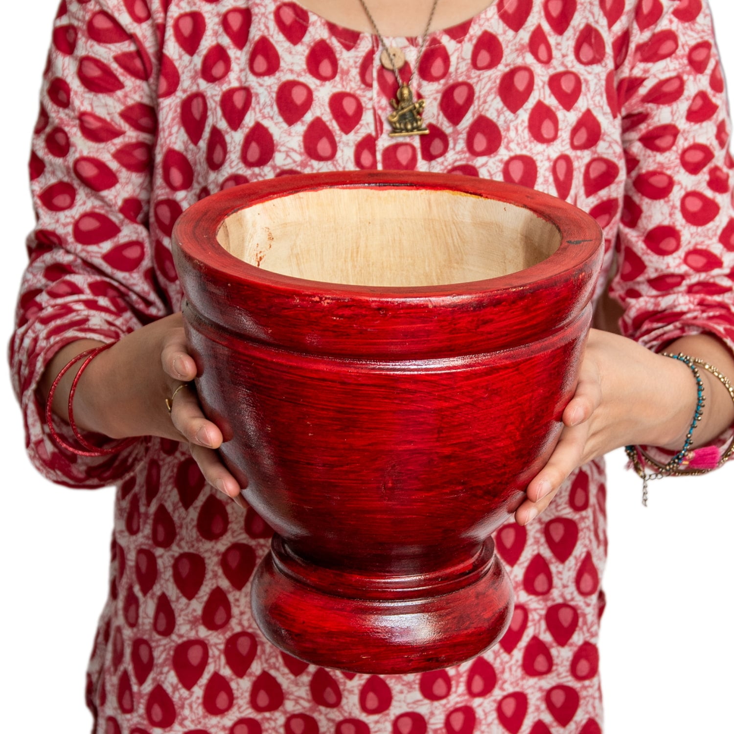 深みのある木の色合いと、どっしりとした素朴なかたちが印象的な一品です。均一に整えられた工業製品とは少し違う、手仕事ならではの表情があり、ひとつひとつにあたたかな味わいがあります。タイの台所や暮らしの道具をそのまま切り取ったような雰囲気があり、使うたびに現地の空気を感じさせてくれます。■実用品としても、インテリアとしても絵になります