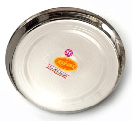 インドでカレーを食べるときに使うステンレス製の大皿です。大皿の中にご飯を入れ、小皿の中に数種類のカレーを入れて現地では使用されています。インド風なおぼんとしてもGoodなデザインですね。