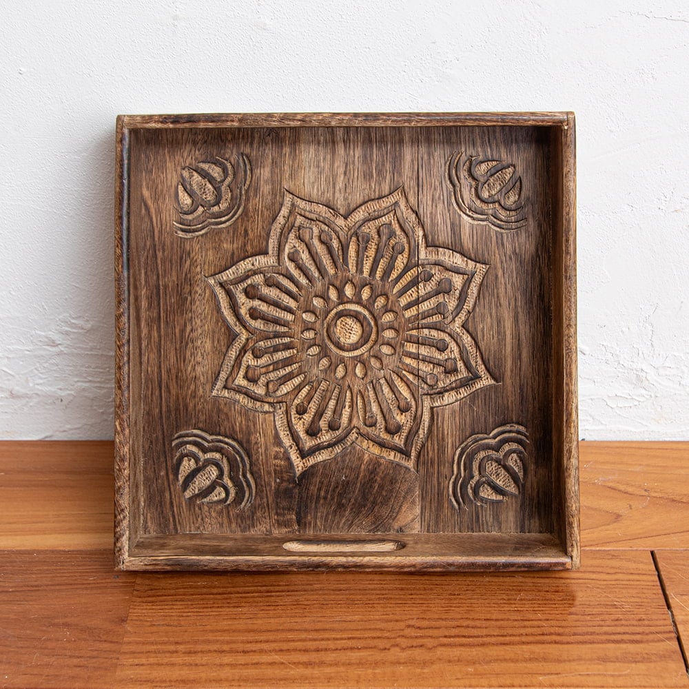 [訳あり価格]手彫りのマンゴーウッドトレイ スクエアSサイズ【30cm】の同一カテゴリ商品