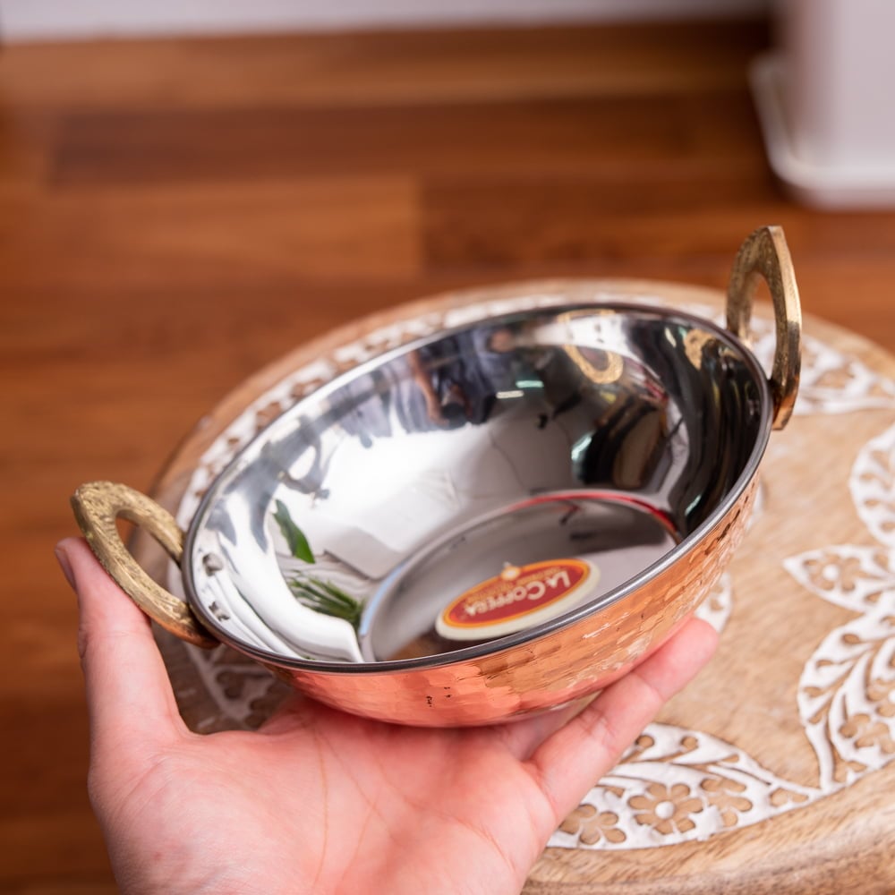 インドの高級料理屋でタンドゥーリーチキンや、カレーの皿として使われることも多いカダイ。汁物をおしゃれに出す時に便利です■料理がより豪華に見えます