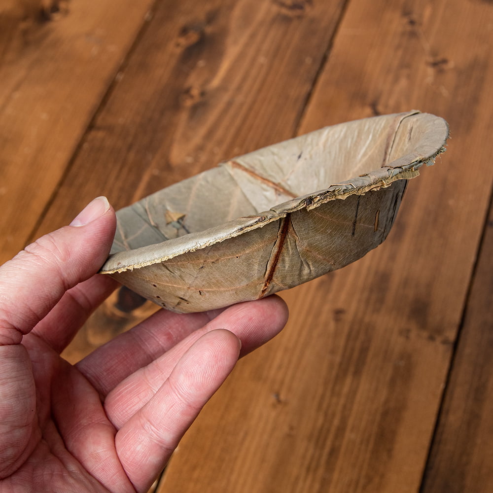 ダールスープやサブジなどを入れるのにちょうど良さそうな小ぶりなボウルです。■木の葉で作られたエコなお皿