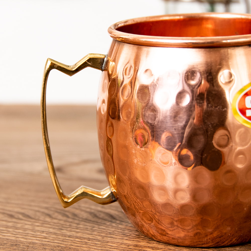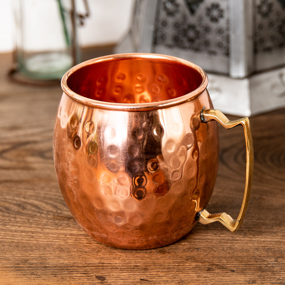 インドの鎚目付き銅装飾マグカップ 450cc x 2個