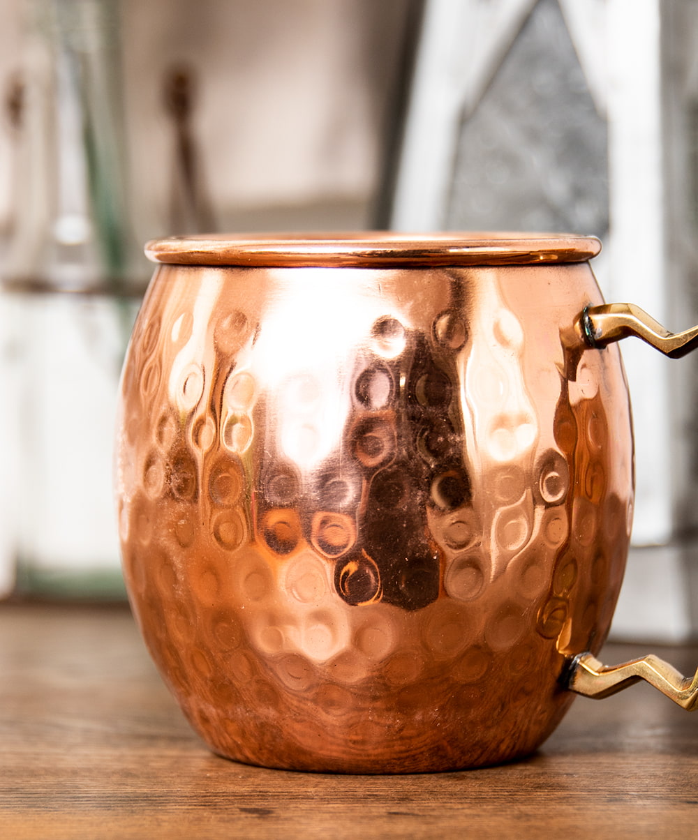 インドでは銅が高い位置づけを与えられており、アーユルヴェーダでは夜のうちに銅製の容器へ水を入れておき、朝に飲むと体の調子を良くしてくれるとされています。インドやネパールなどの高級レストランではこのようなグラスでラッシーや水をサーブしてもらえます。