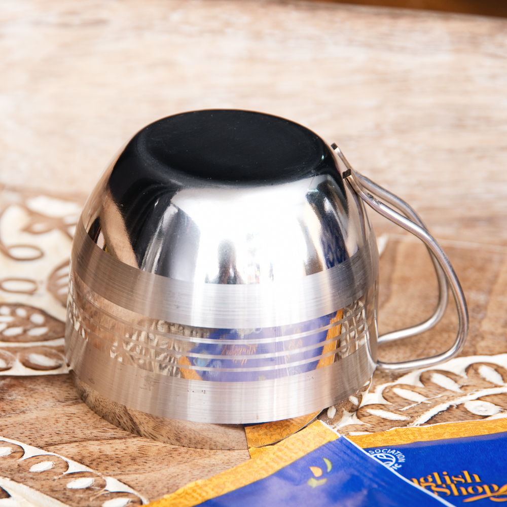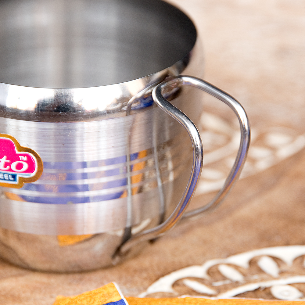インドの取っ手付き!ステンレスマグコップ【高さ:5.2cm×直径:6.2cm】 x 15個