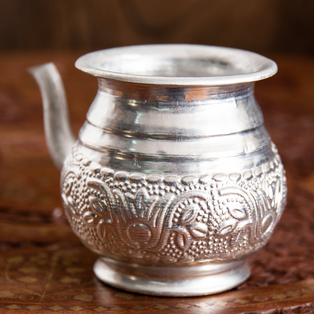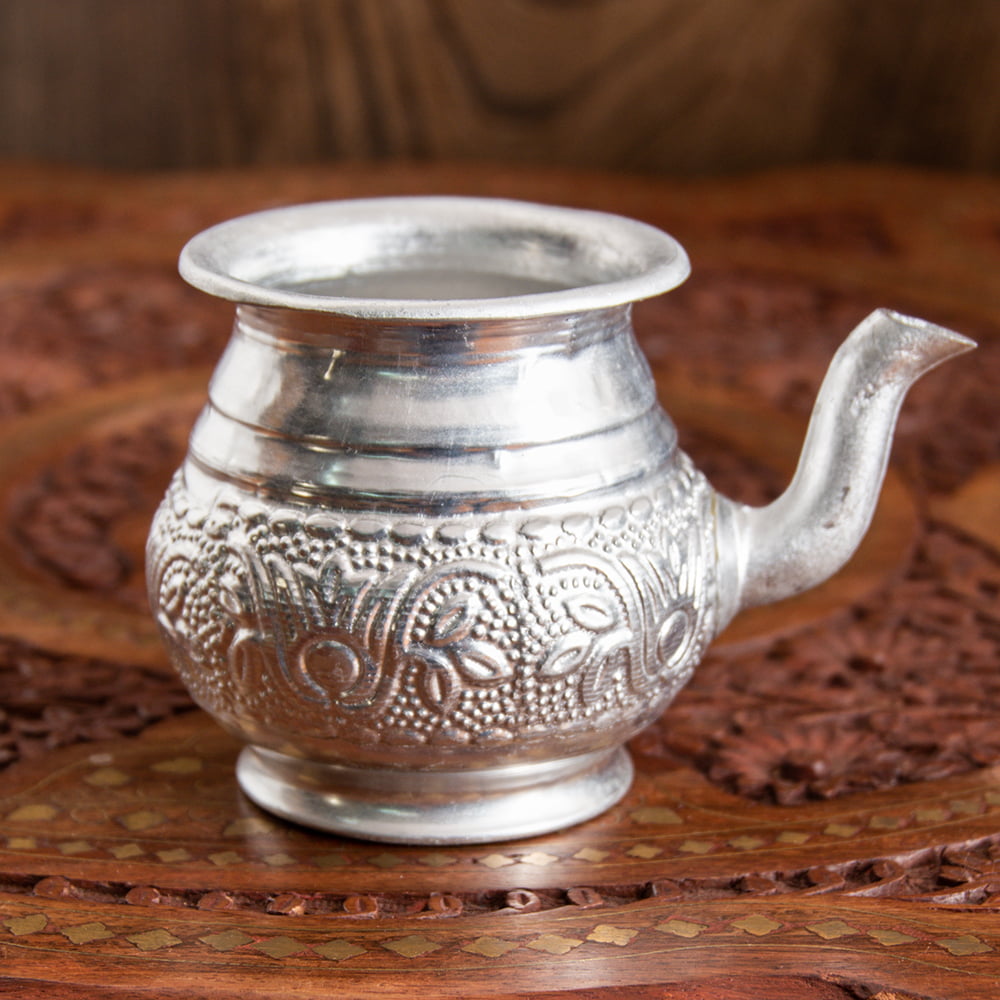 【送料無料・12個セット】インド伝統唐草エンボスのアルミ水差し - 高さ:約7.5cm 通販店